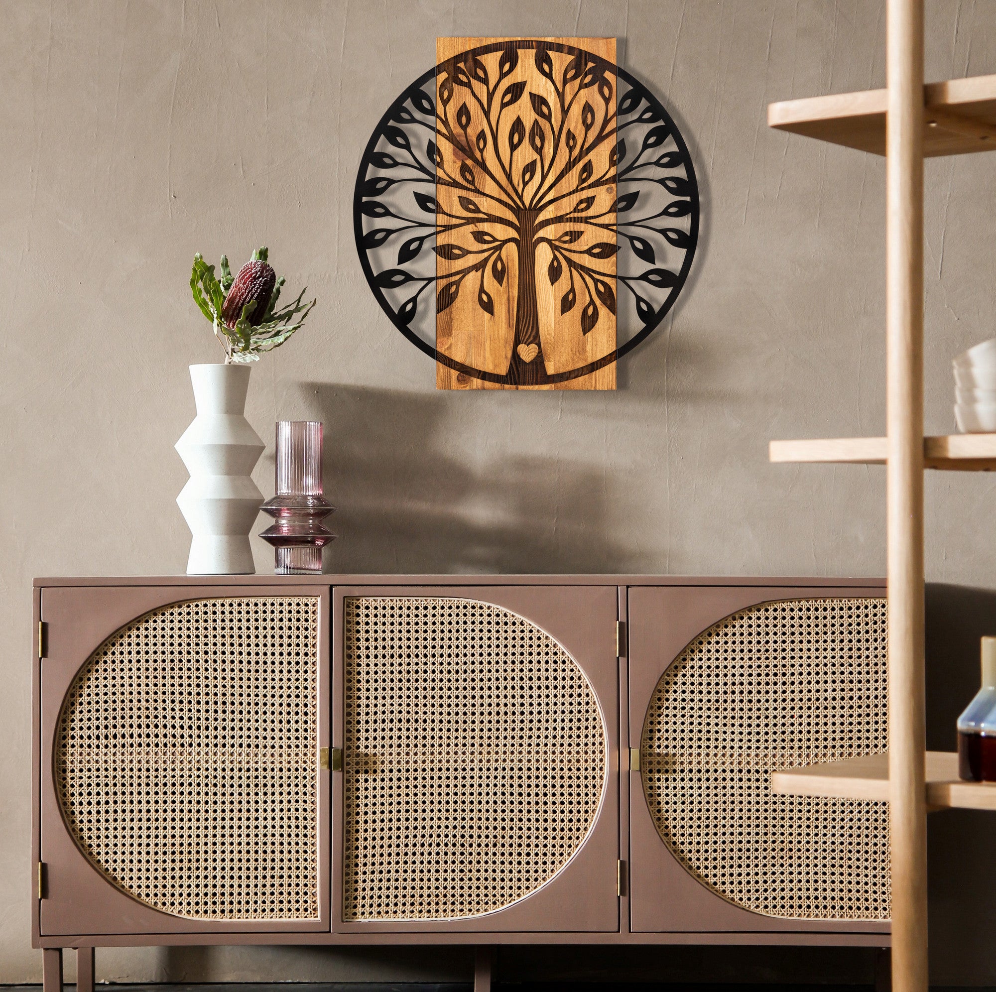 Zehre – Acessório Decorativo de Parede em Metal com Moldura em Madeira, Preto/Nogueira, 56 x 58 cm (279ENZ1777)