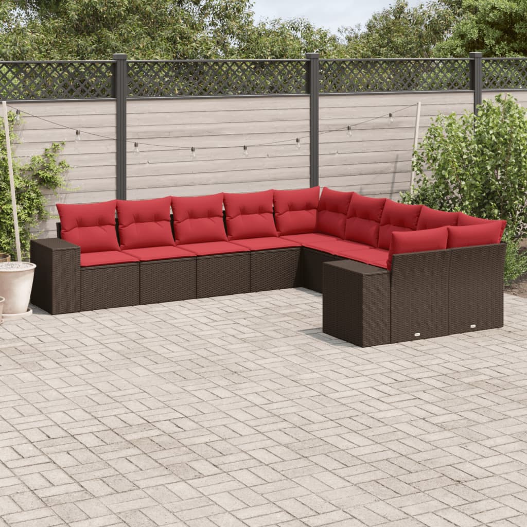 10 pcs conj. sofás jardim com almofadões vime PE castanho