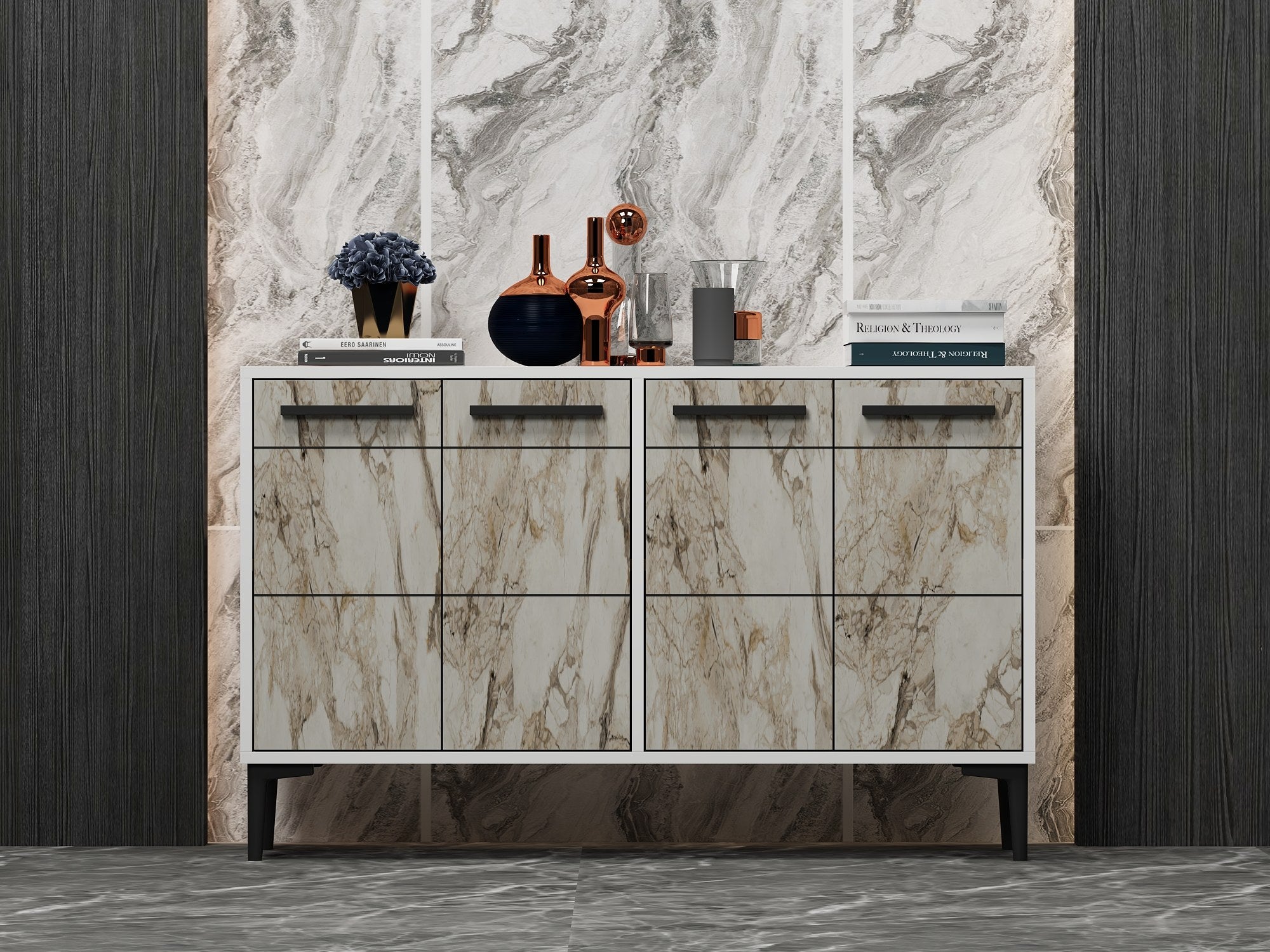 Aparador de MDF – 120cm x 30cm x 75cm – Branco e Mármore