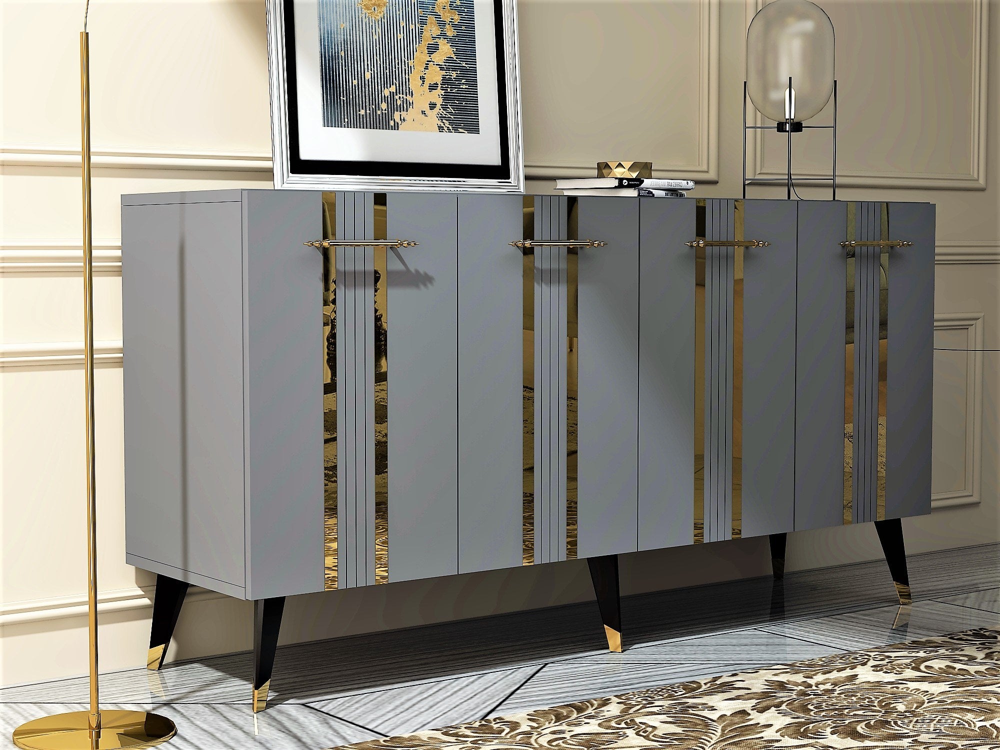 Aparador – 150 cm – Antracite e Dourado – Painéis de Partículas