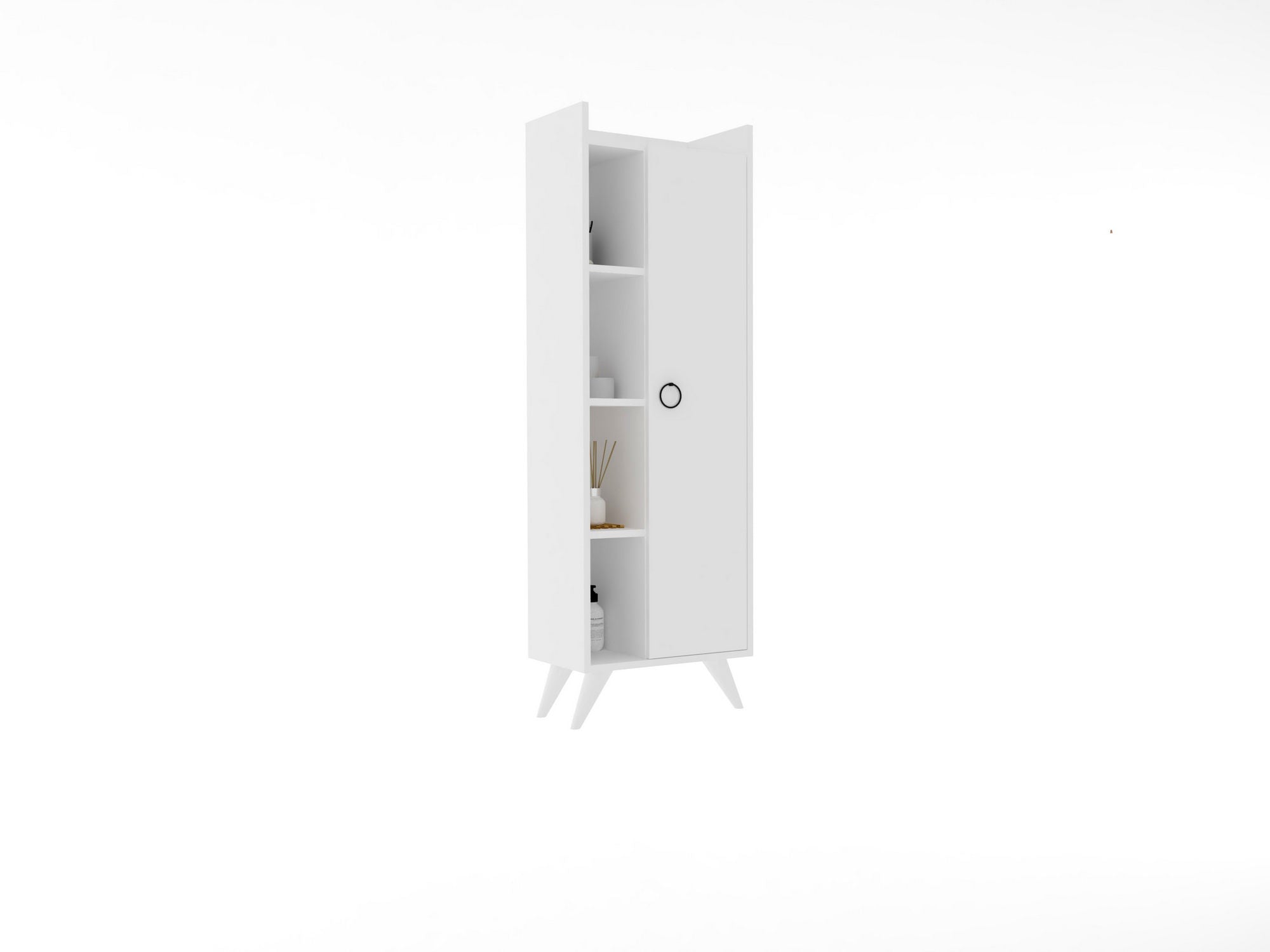 Armário de casa de banho escandinavo – 60 x 87 x 15 cm – Branco – Painel de partículas revestido a melamina