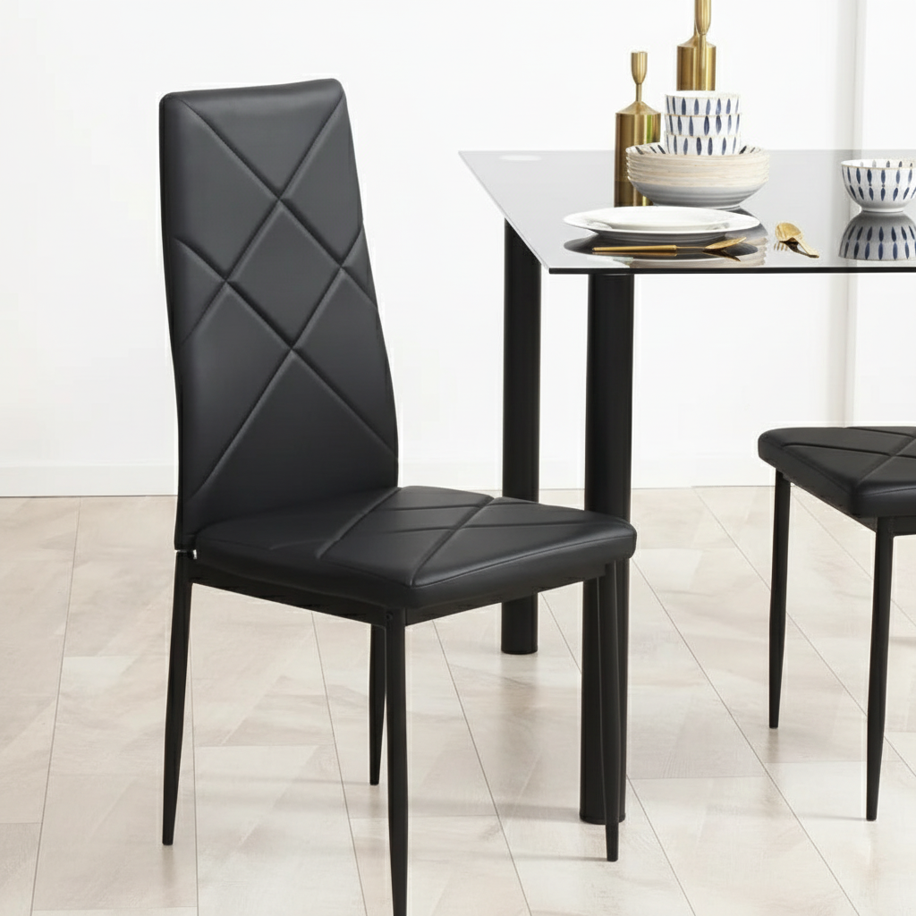 Conjunto de 4 Cadeiras de Sala de Jantar Estofadas em Couro Sintético Preto 41x50x97cm