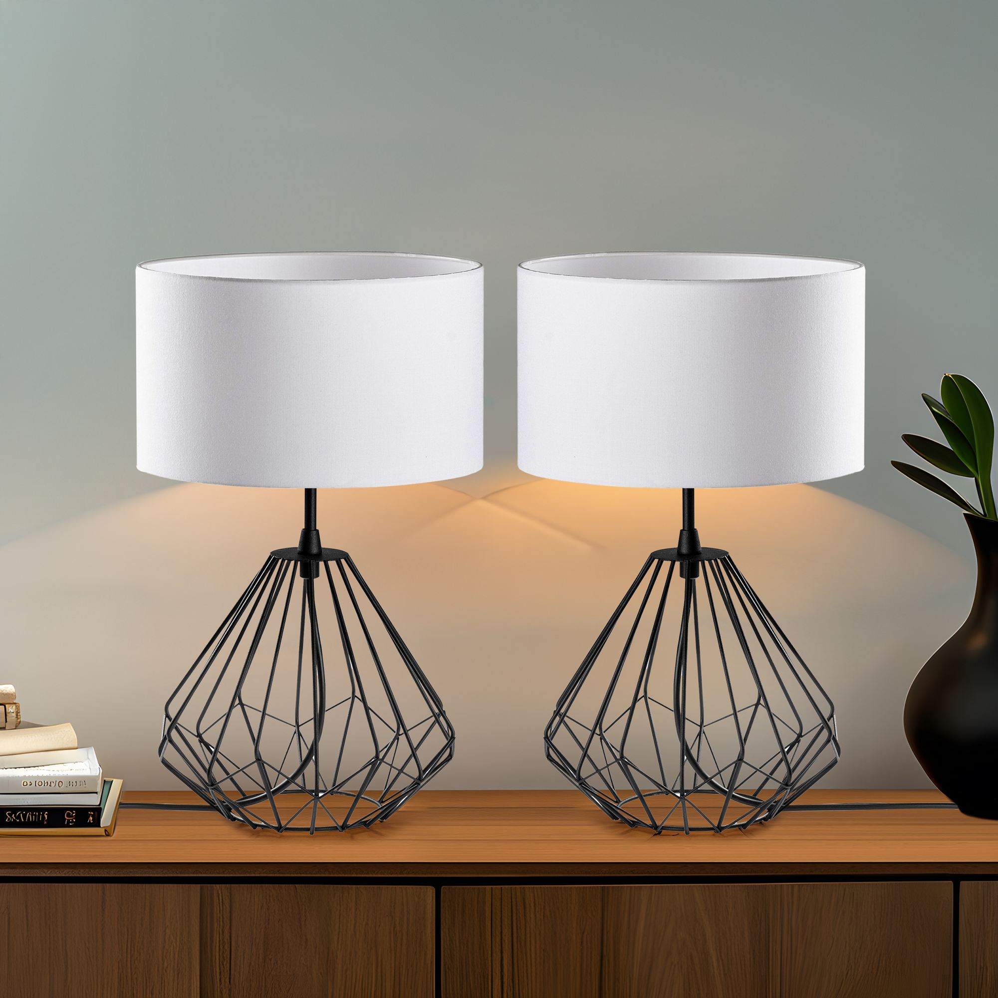 Conjunto de Candeeiros de Mesa – 17 x 17 x 33 cm – Branco, Preto – Metal