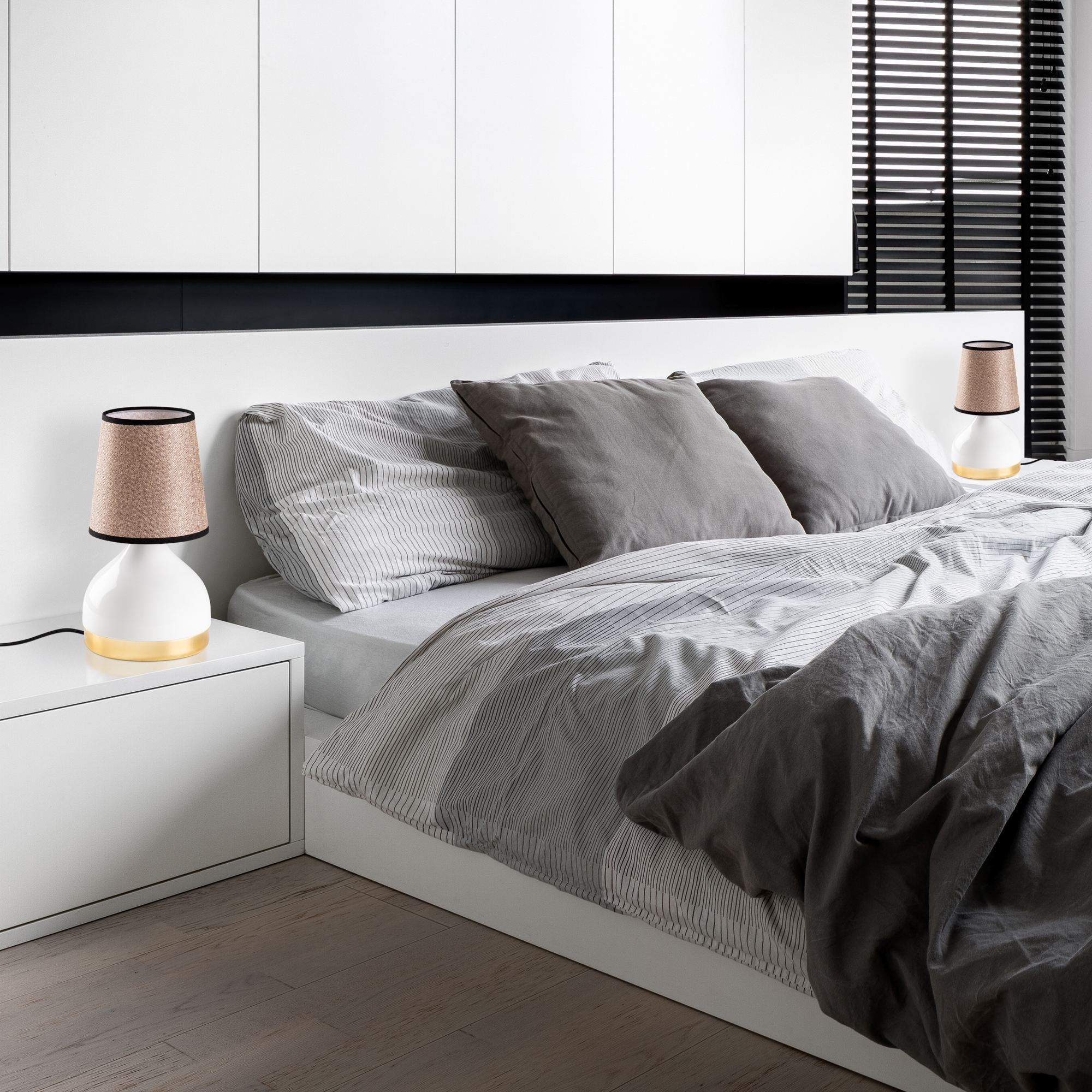 Conjunto de Candeeiros de Mesa – 17 x 17 x 33 cm – Branco e Marrom Claro – Metal e Tecido
