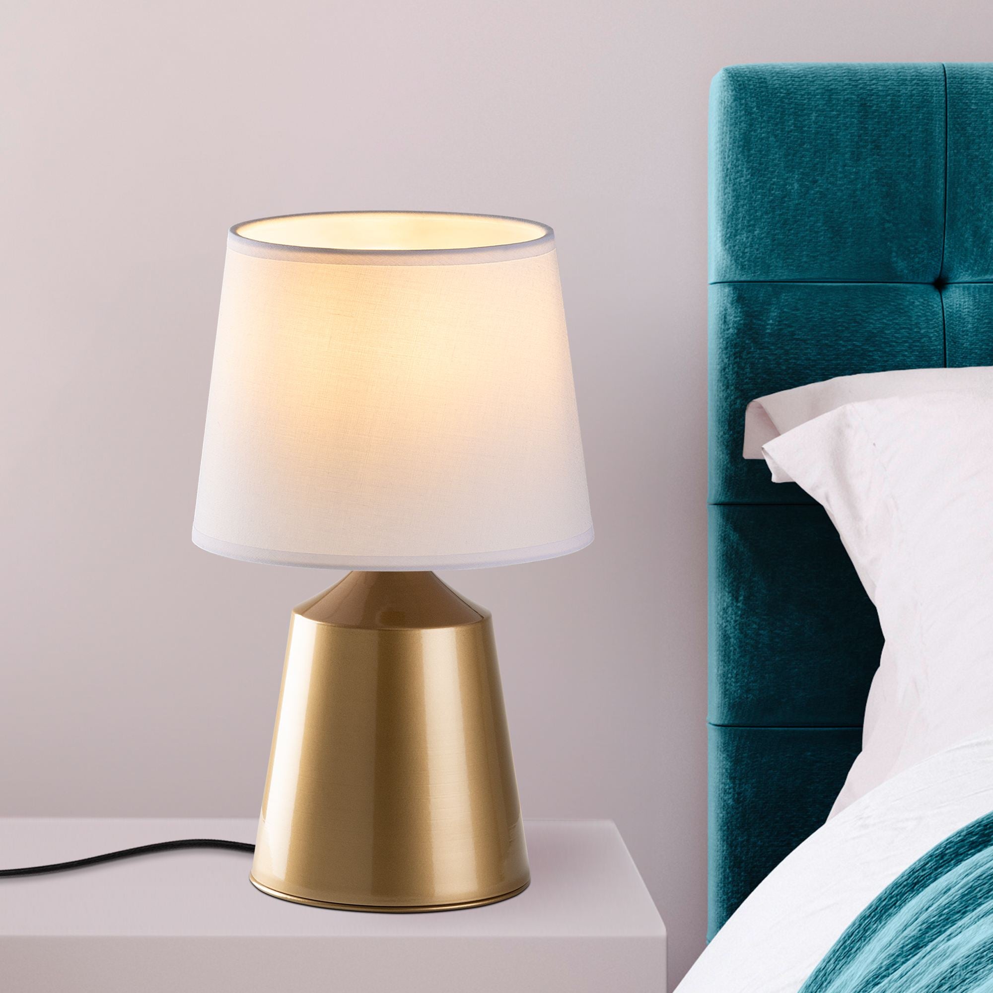 Candeeiro de Mesa – 28 x 28 x 49 cm – Dourado e Branco – Metálico