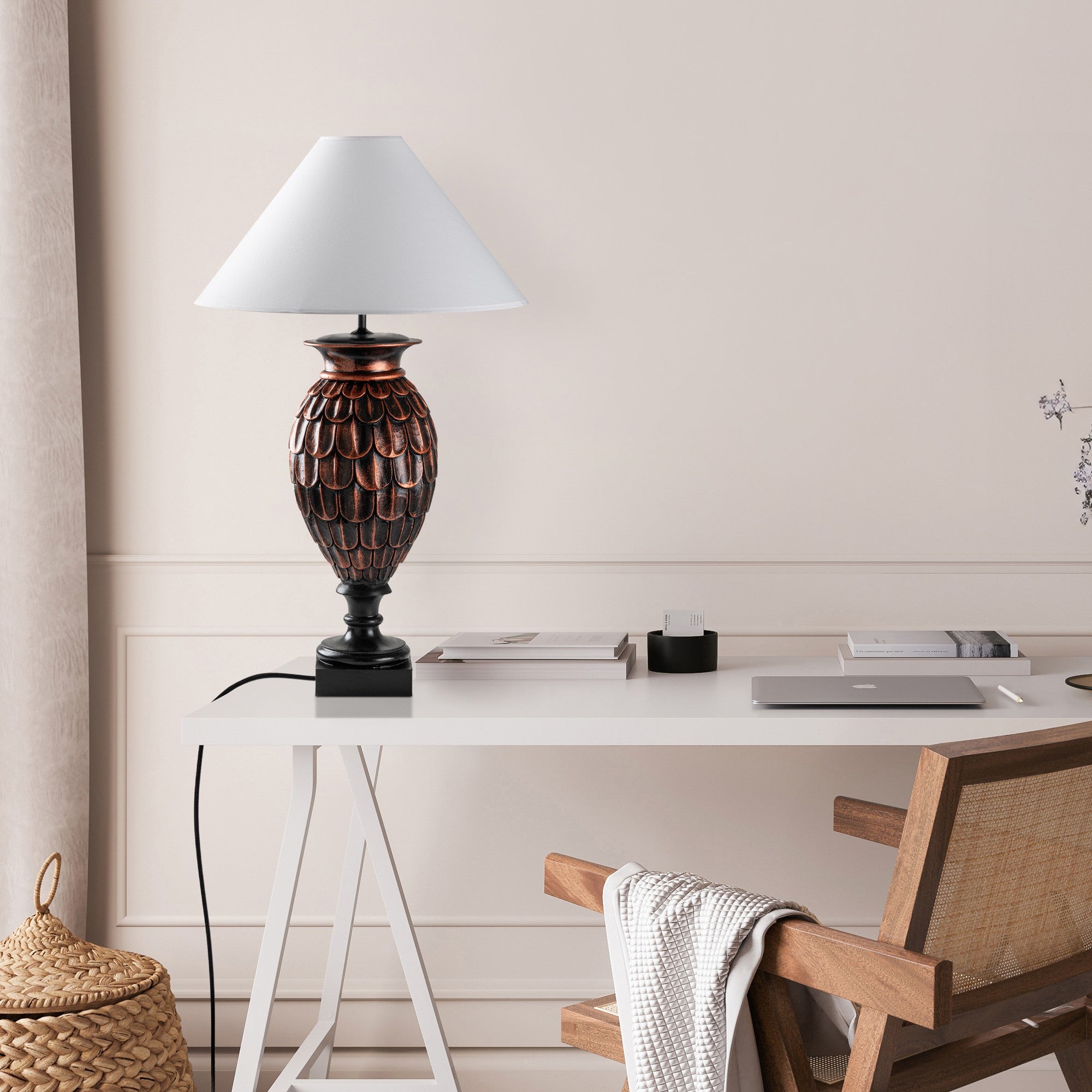 Candeeiro de Mesa – 31 cm – Preto e Rattan – Metal
