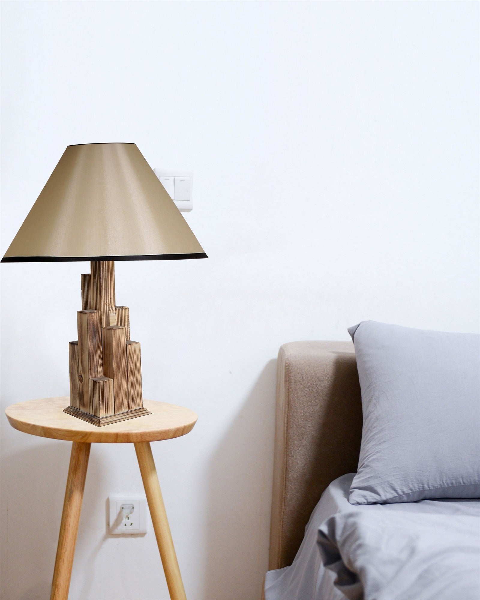 Candeeiro de Mesa – 33 cm x 45 cm – Marrom e Preto – Madeira e Tecido
