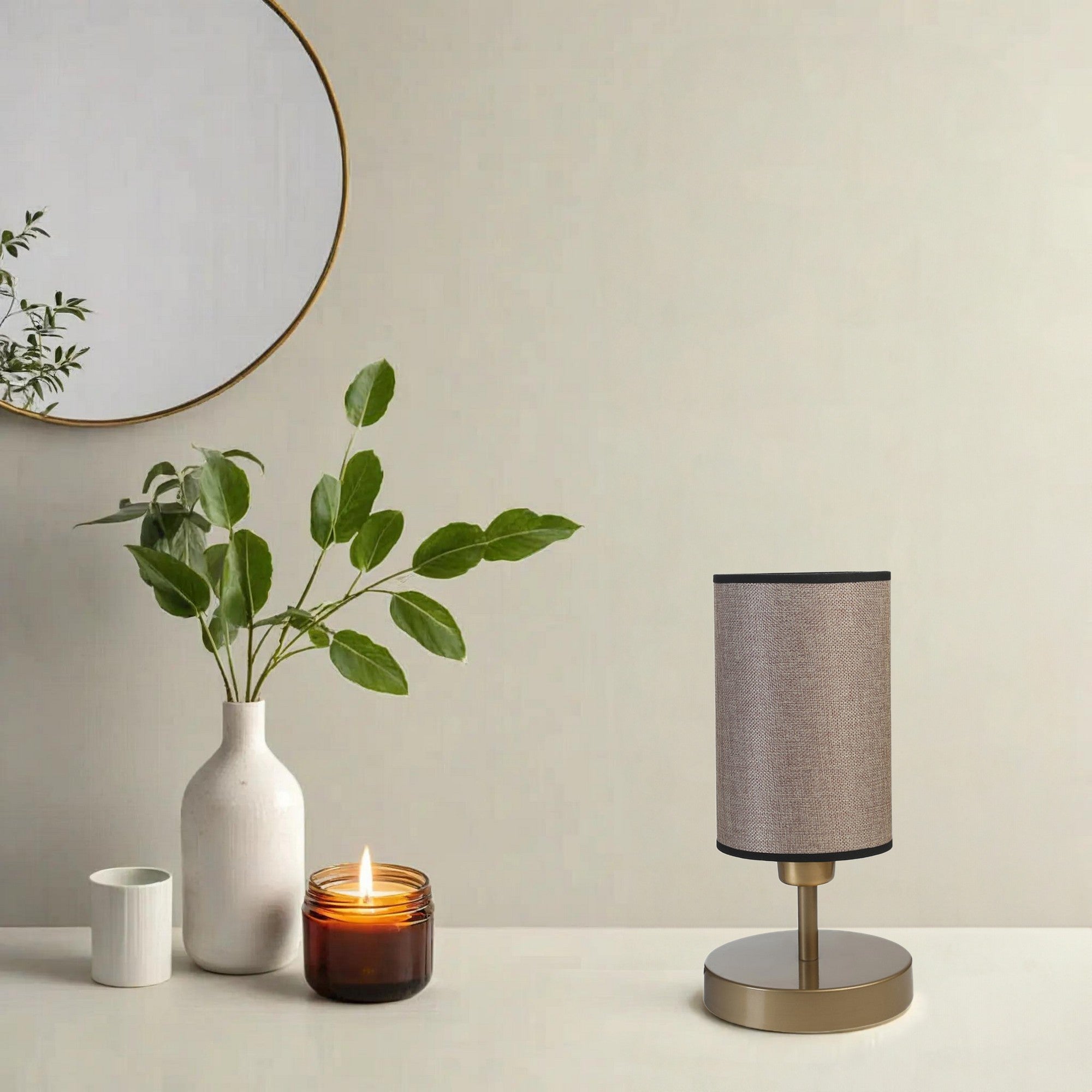 Candeeiro de Mesa – 30 cm – Preto e Bege – Metal com Tecido