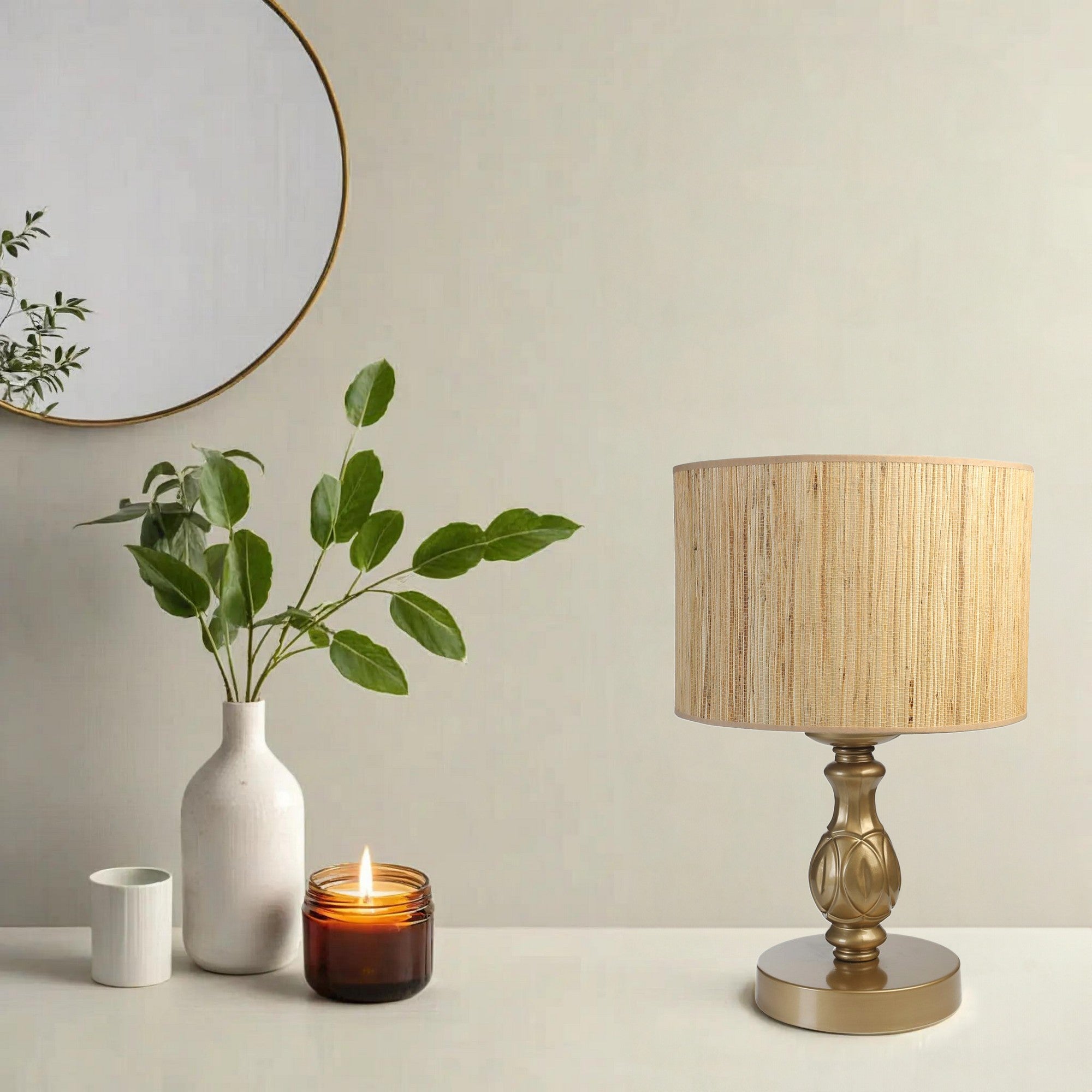 Candeeiro de Mesa – 35 cm – Creme – Metal