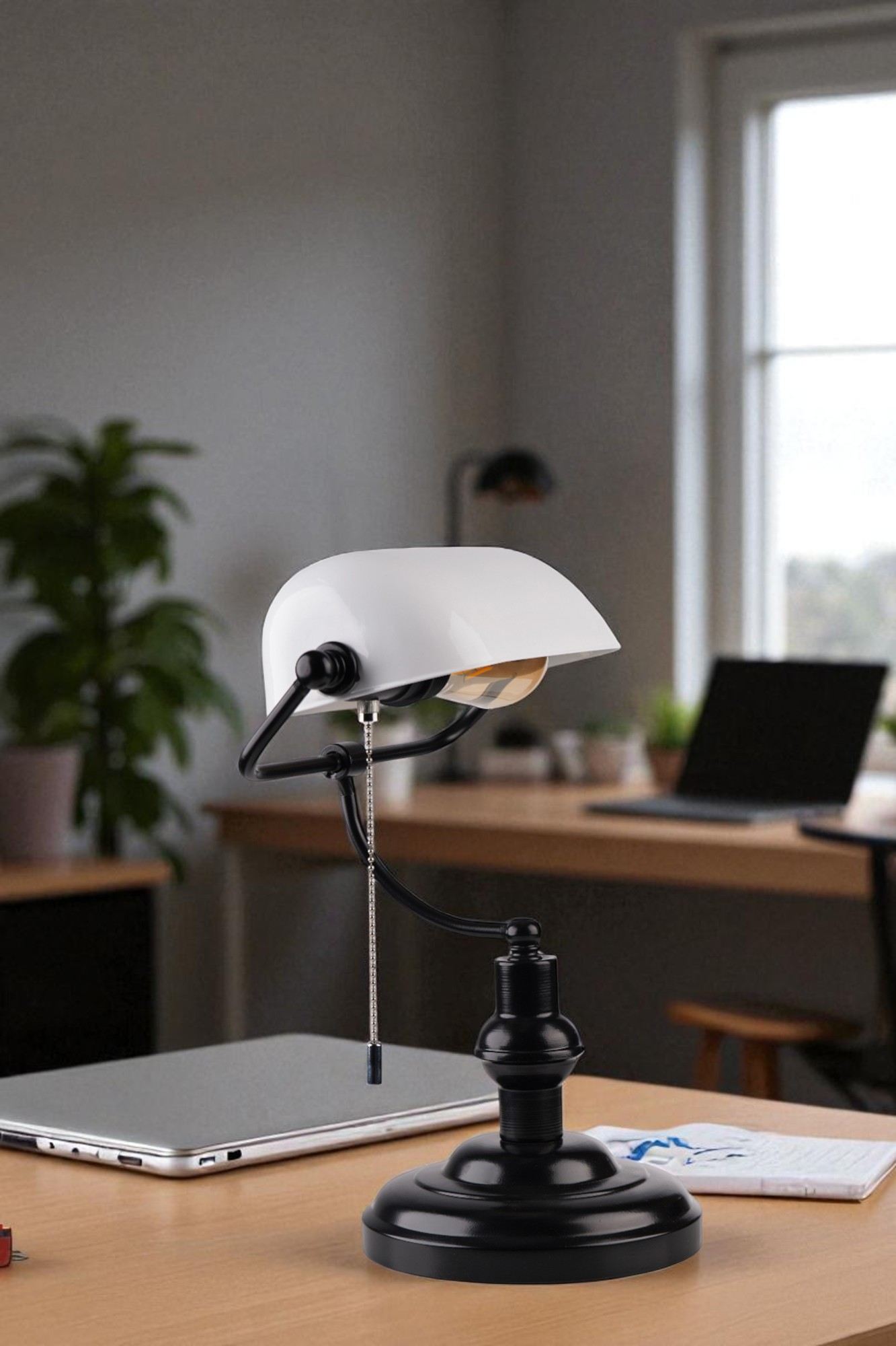 Candeeiro de Mesa – 38 cm de Altura – Branco e Preto – Metal
