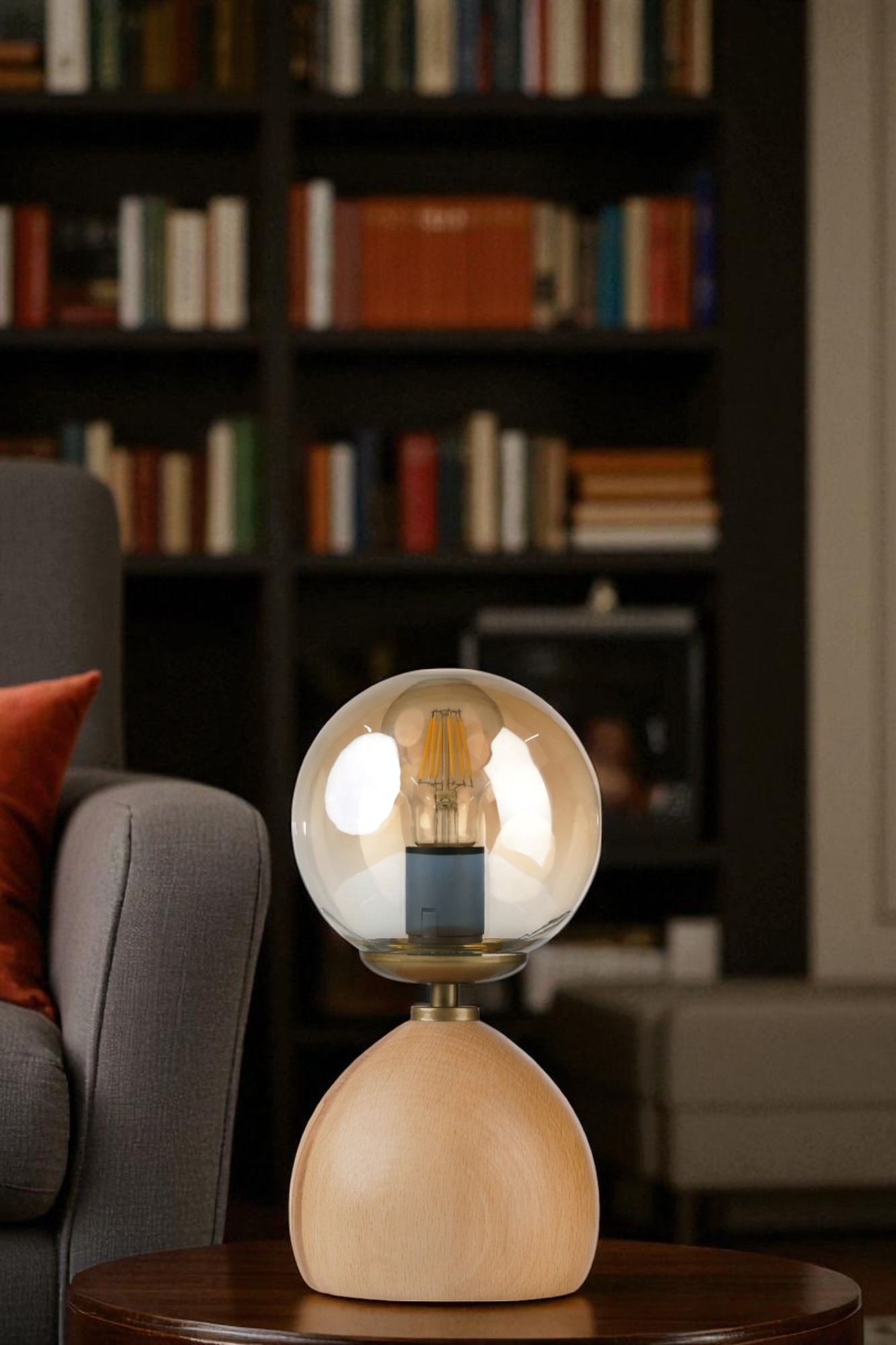 Candeeiro de Mesa de Madeira – 38 cm – Mel, Preto, Noz – Vidro