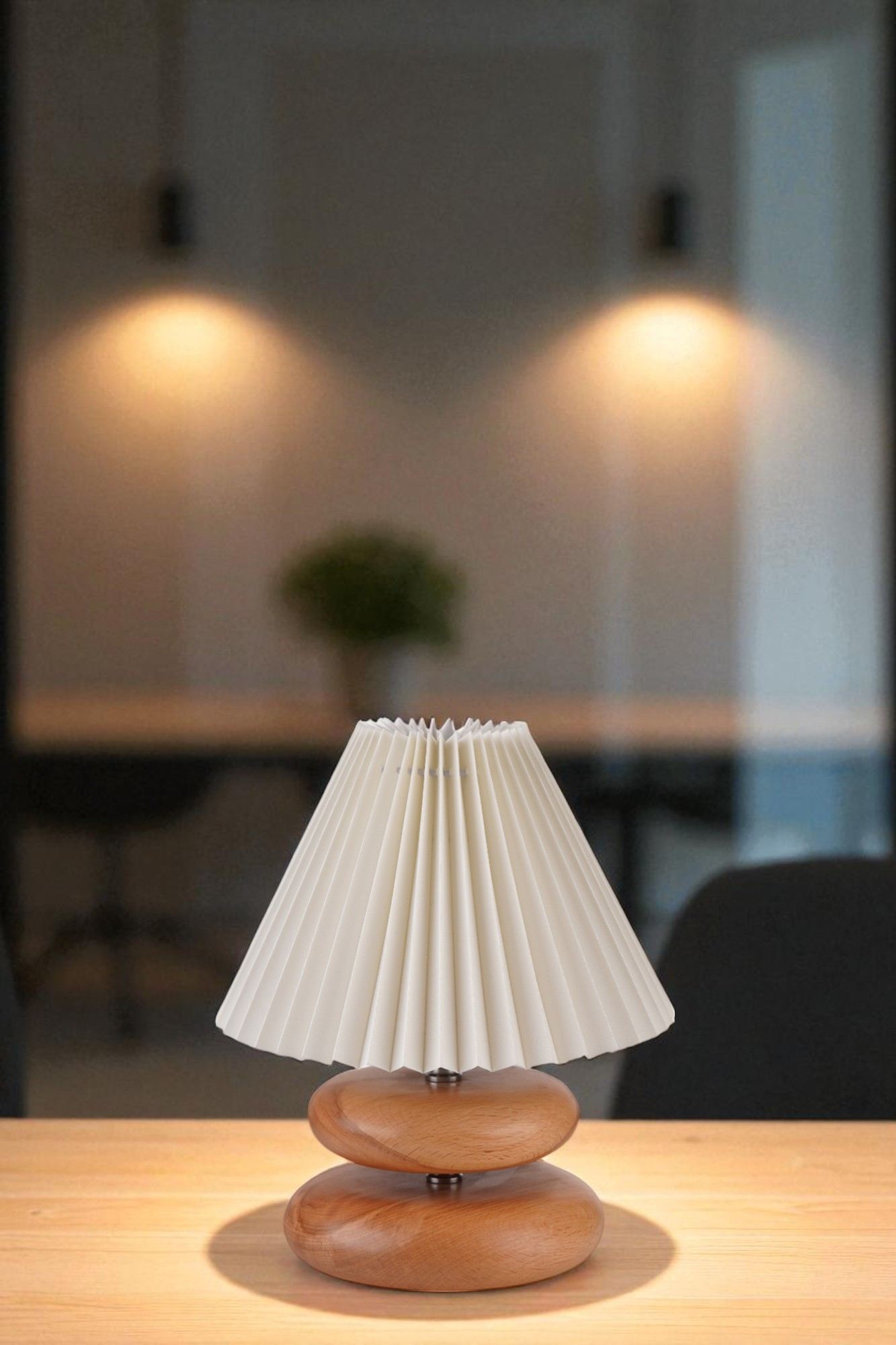 Candeeiro de Mesa em Madeira – 30 cm de Altura – Creme e Carvalho – PVC