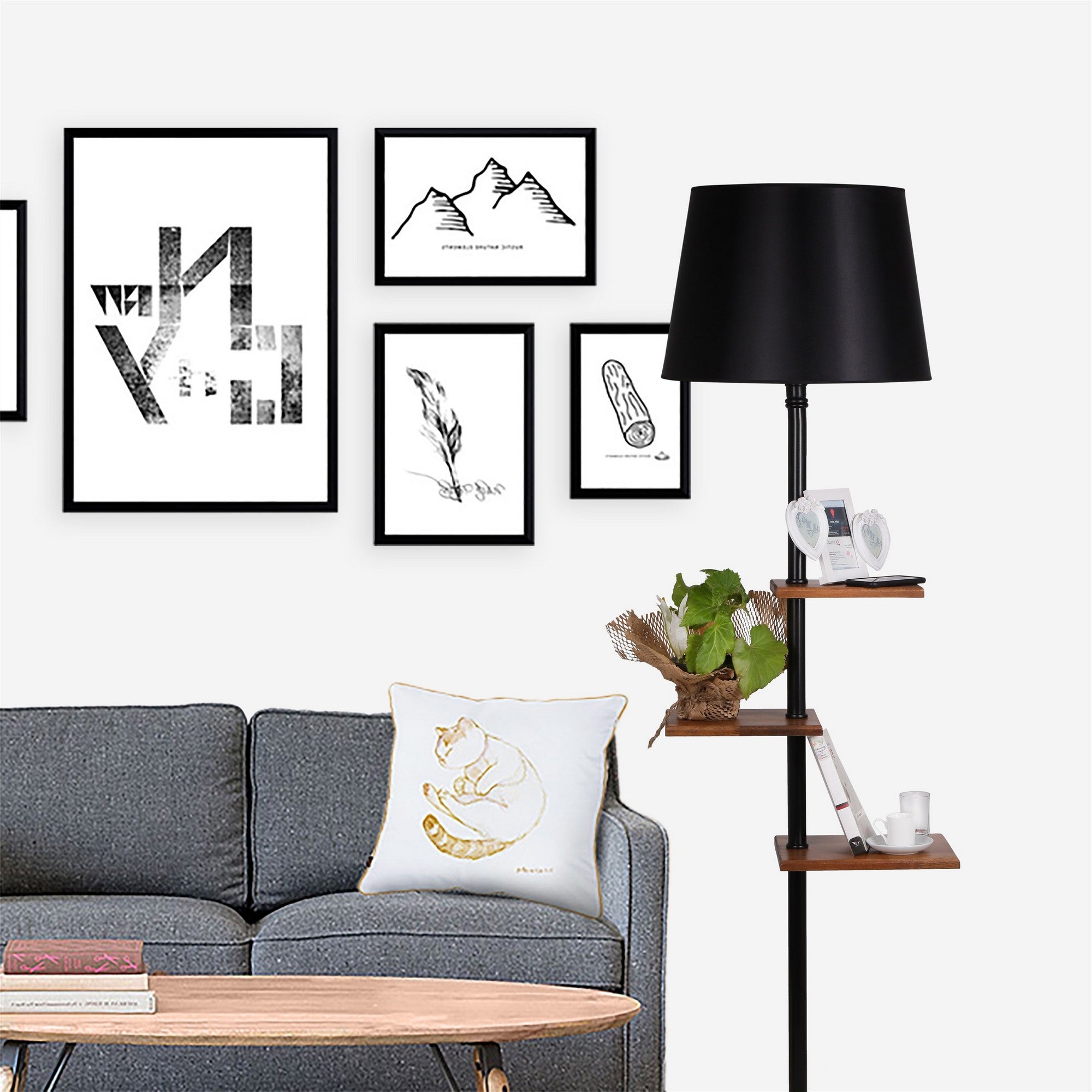 Candeeiro de Pé – 150 cm de Altura – Preto – Madeira e Metal