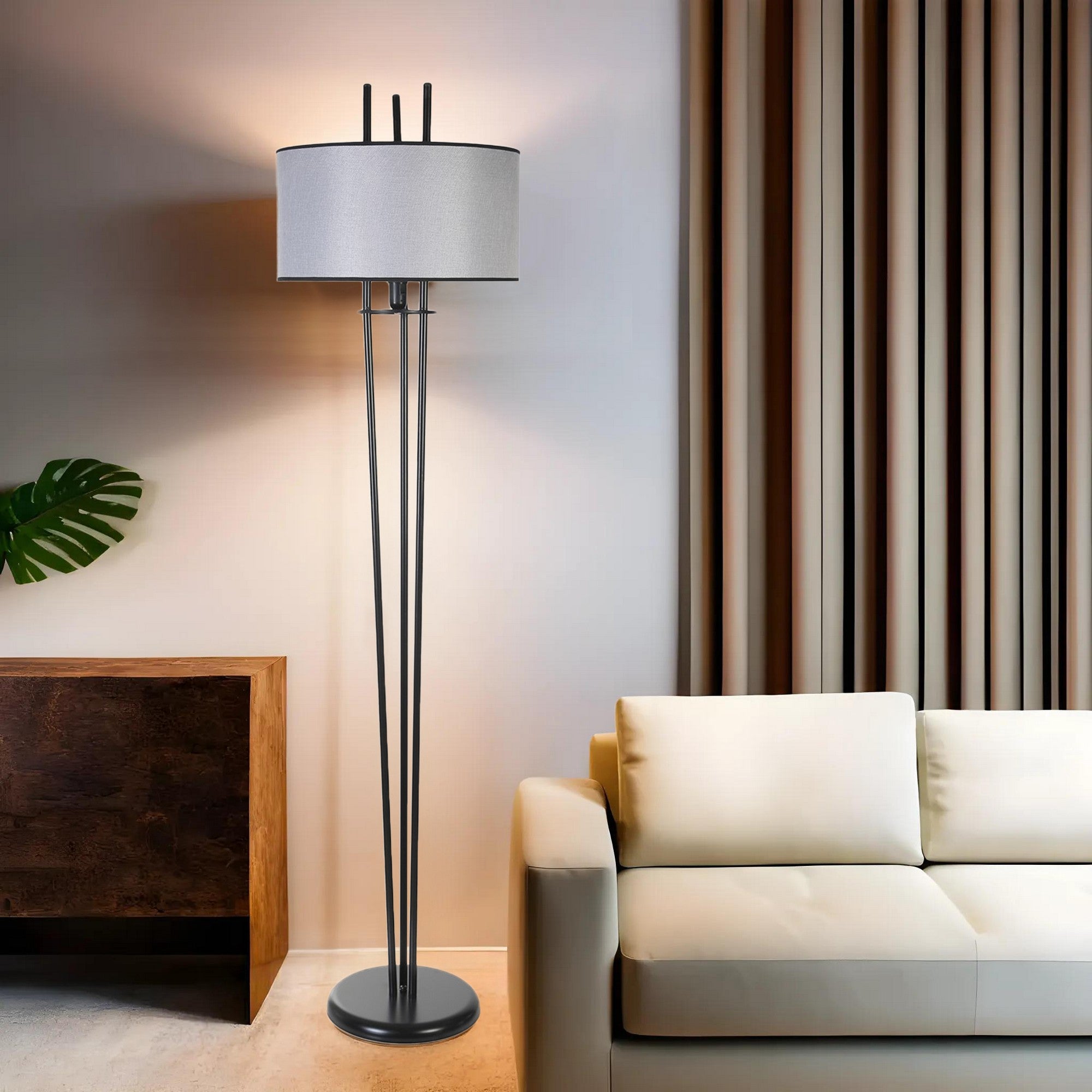 Candeeiro de Pé – 165 cm – Preto e Cinza – Metal e Tecido
