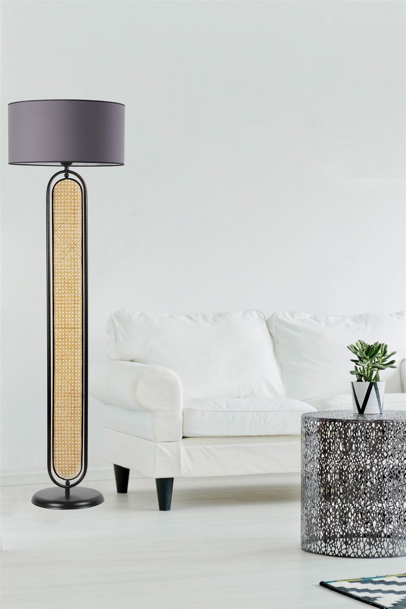 Candeeiro de Pé – 162 cm – Preto e Cinza – Metal e Rattan
