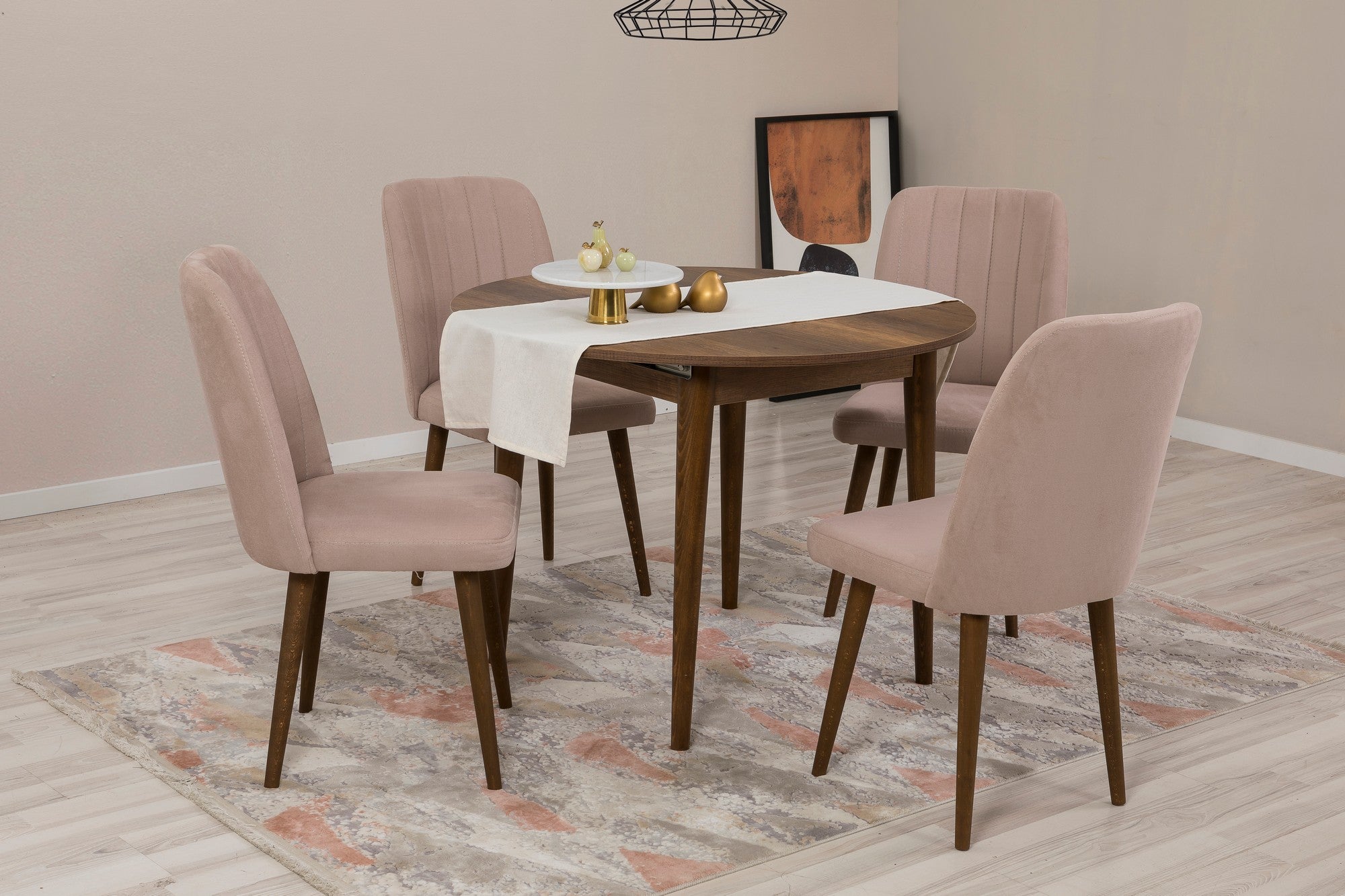 Conjunto de mesa de jantar extensível e cadeiras – 100 cm (aberto: 139 cm) – Nogueira e Creme – Melamina