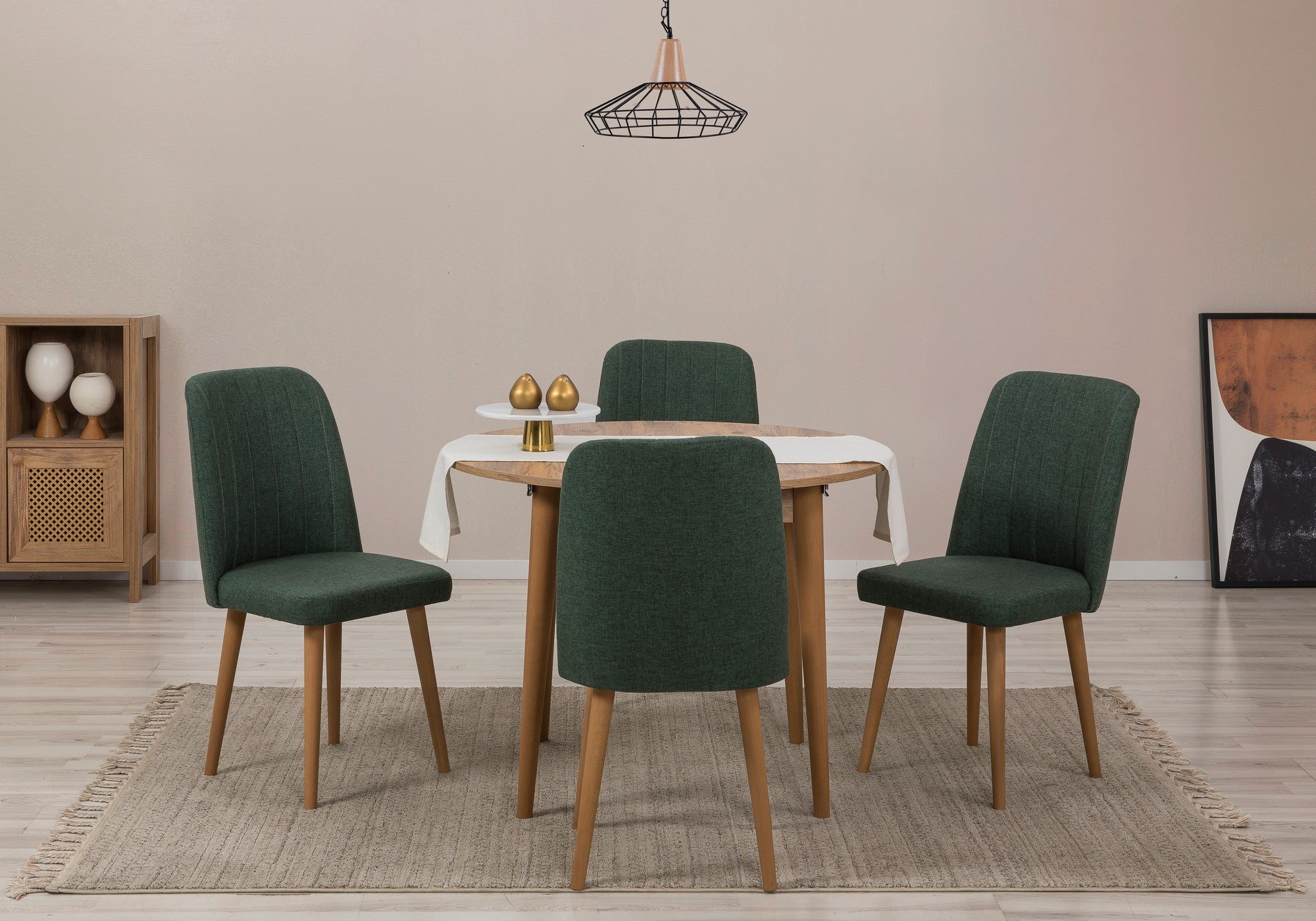 Conjunto de mesa de jantar extensível e cadeiras (5 peças), pinho atlântico e verde, 100 cm (aberto: 139 cm) | 100% revestido em melamina, 18 mm de espessura | Elegante e funcional para salas de jantar modernas
