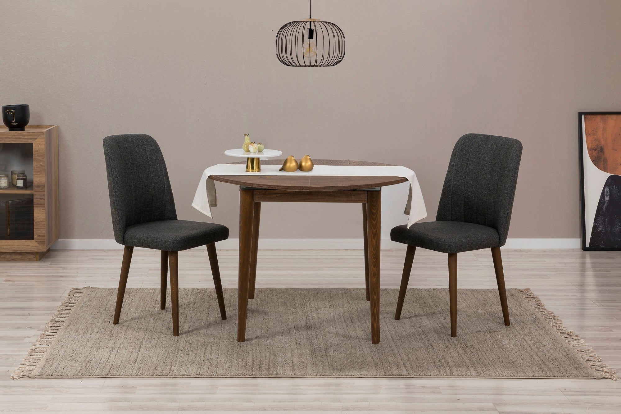 Conjunto de mesa de jantar extensível e cadeiras – 100 cm (aberto: 131 cm) – Nogueira e Antracite – Aglomerado revestido em melamina