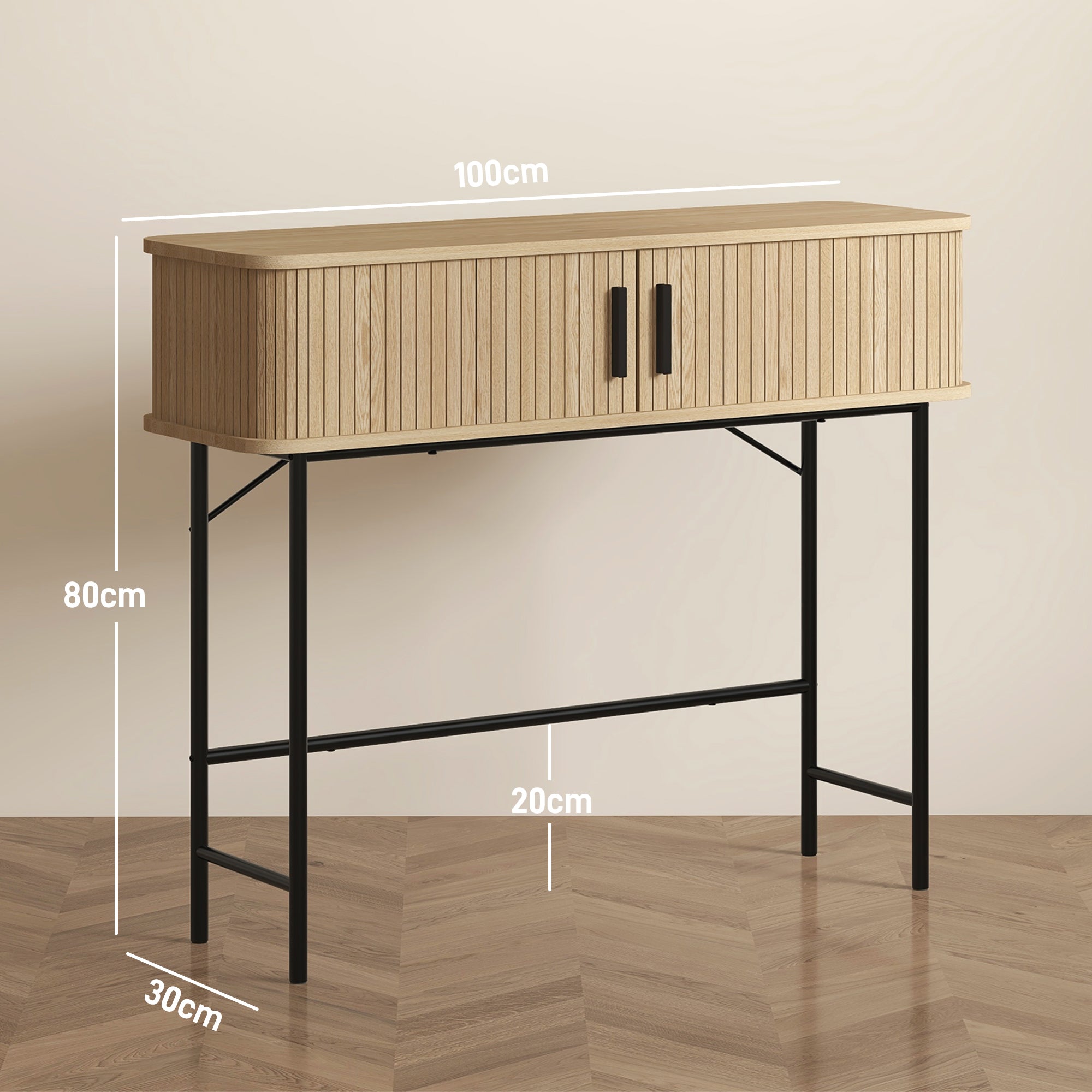 Mesa Consola Moderna – 80x30x76 cm – Cor de Madeira Natural – Aglomerado de Madeira e Aço