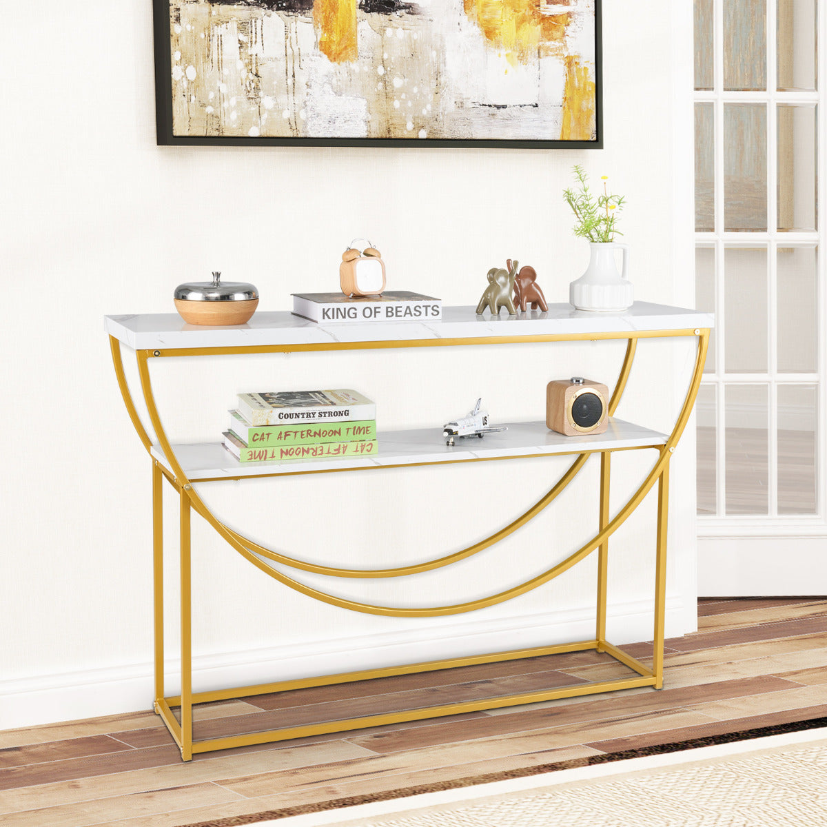 Mesa Consola de 2 Níveis com Tampo de Imitação de Mármore Consola Estreita para Hall de Entrada Mesa Extra Longa para Sofá para Corredor Branco
