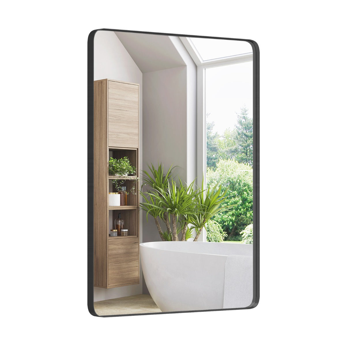 Espelho de Parede com Moldura de Metal Espelho Retangular Arredondado para Casa de Banho Corredor Vestíbulo Pendurado Horizontal/Vertical 76,5 x 56,5 cm