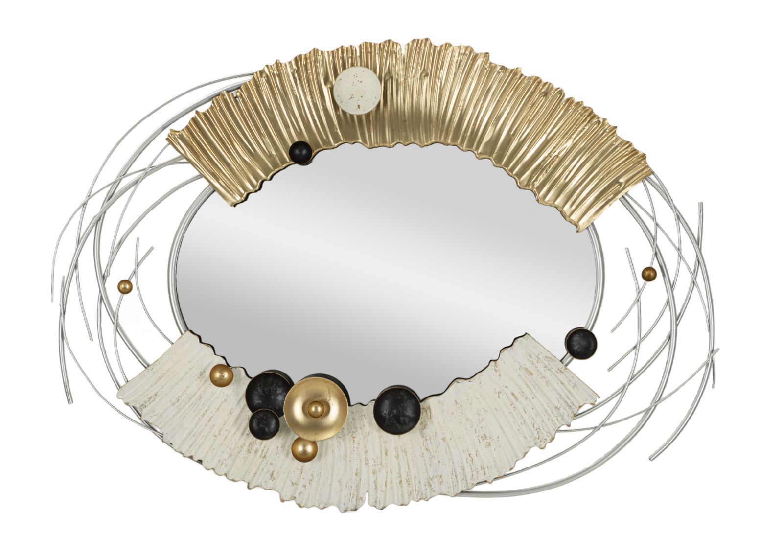 Espelho de Parede em Forma de Crescente – Preto e Dourado – Ferro