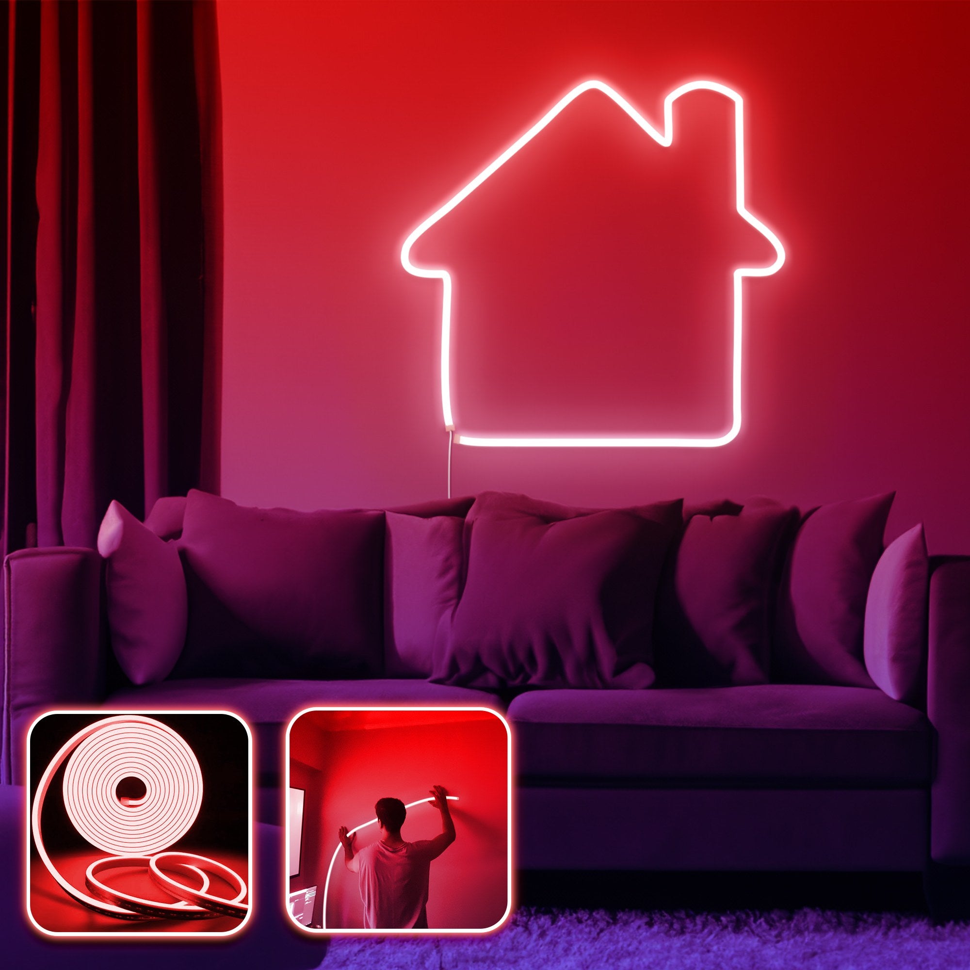 Iluminação LED de parede decorativa – 300 cm – Vermelho – Neon à prova d'água