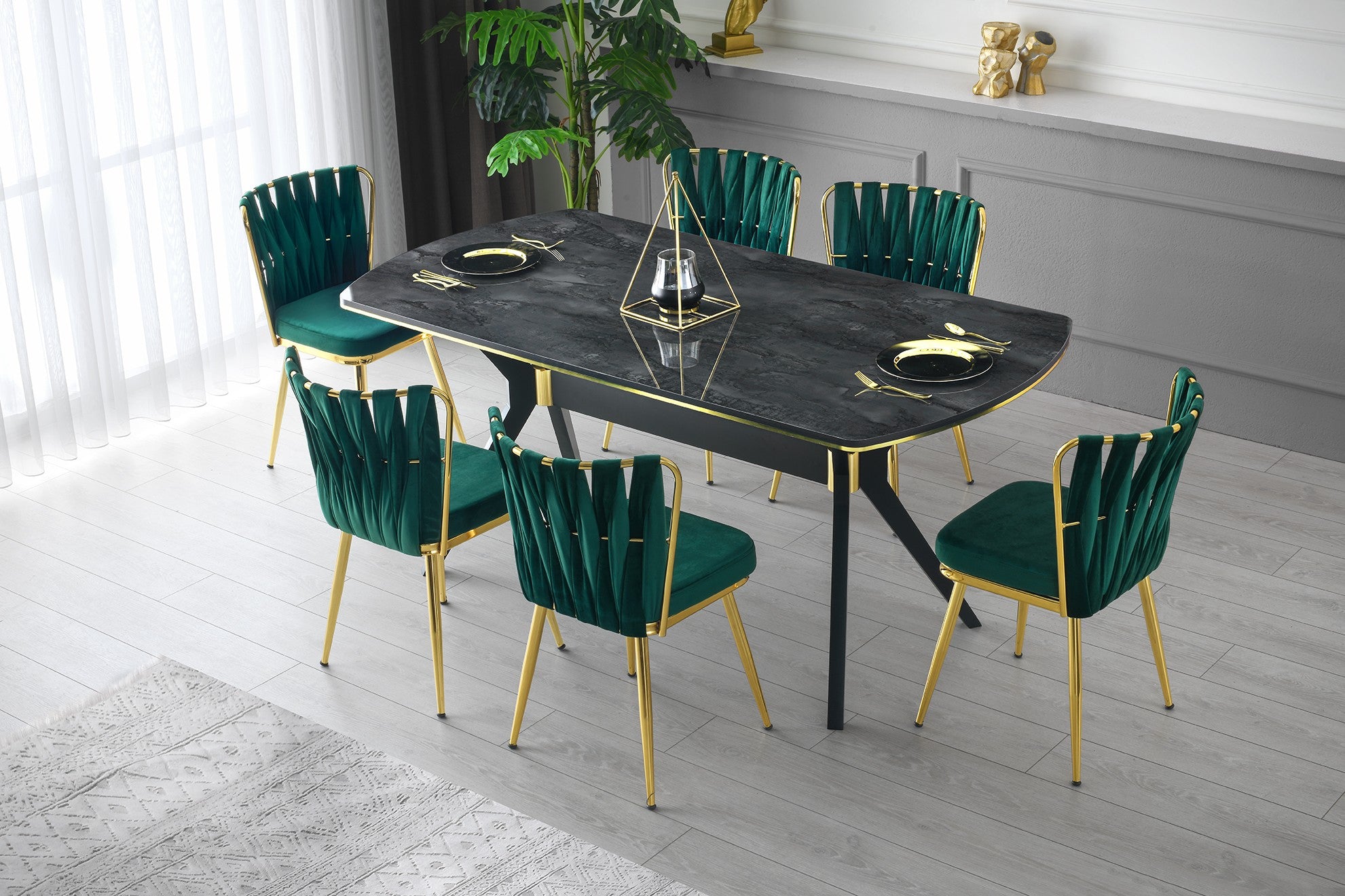 Mesa de jantar – 180 cm x 90 cm x 79 cm – mármore preto – MDF e ferro