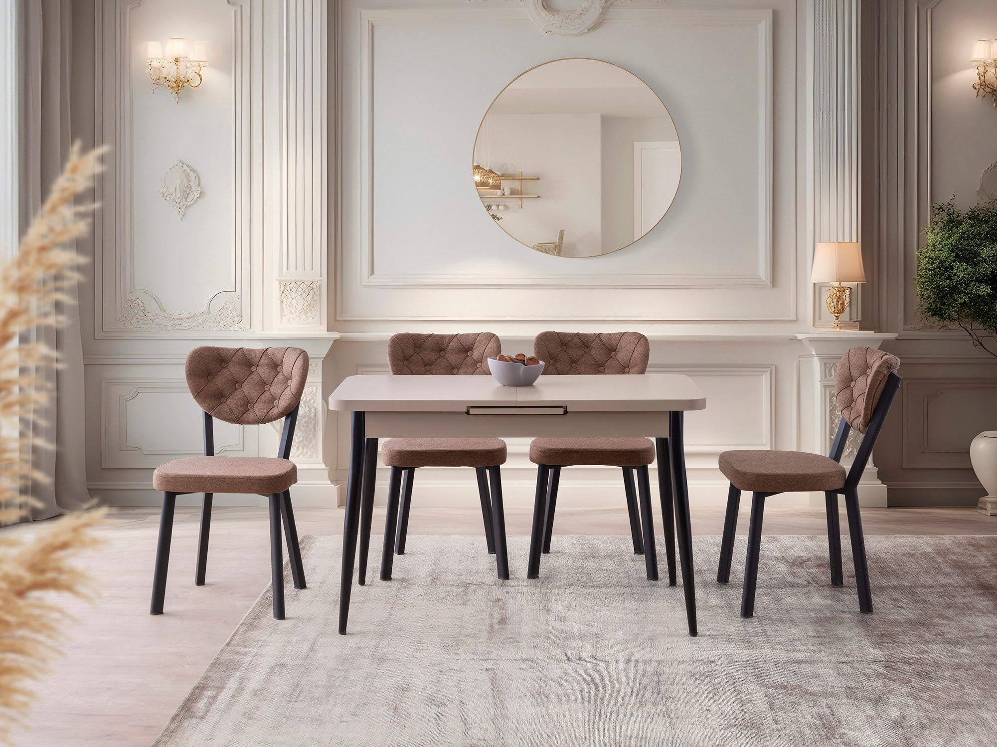 Mesa de Jantar Extensível – 120 cm a 150 cm – Mocha Claro – Placa de Partículas com Melamina e Ferro