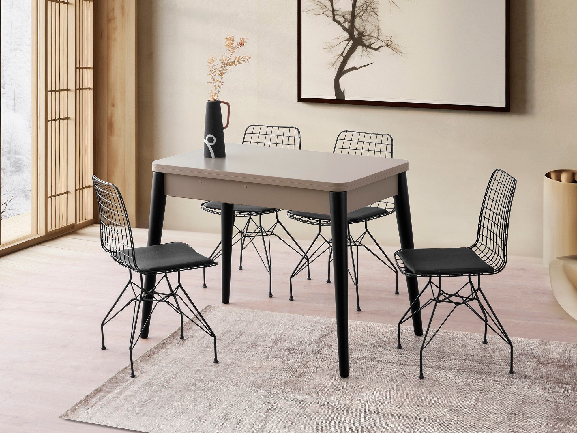 Mesa de Jantar Extensível – 130 cm largura, 75 cm altura, 80 cm profundidade, 164 cm largura extensível – Preto – MDF revestido em melamina