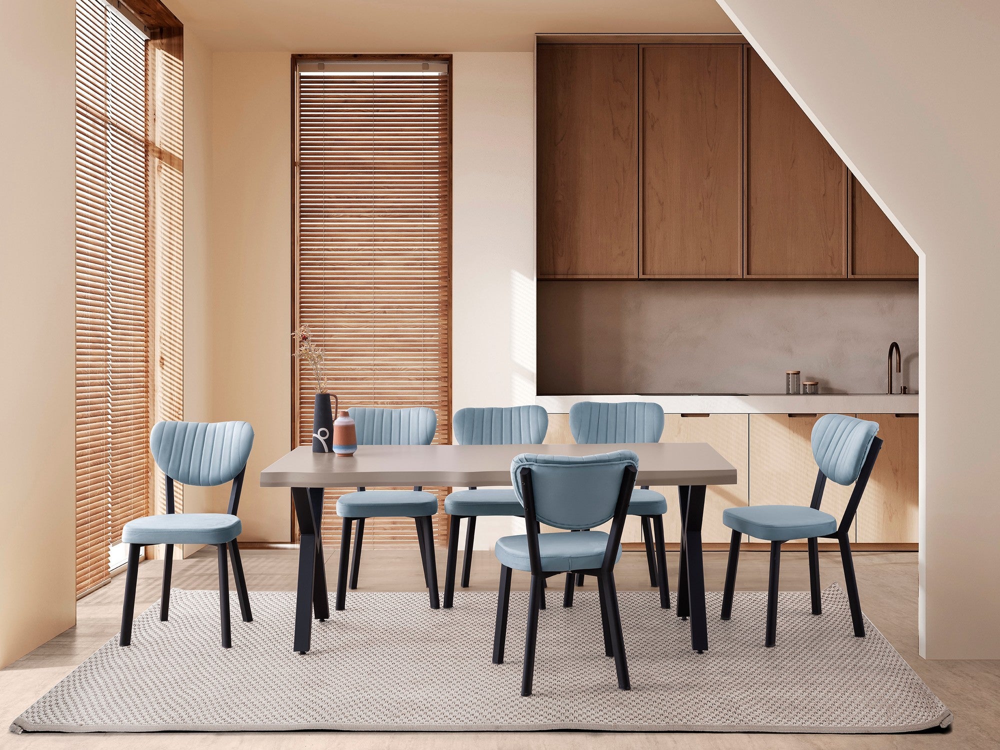Mesa de Jantar – 180cm x 90cm x 79cm – Pedra Cinzenta – MDF com Pernas de Ferro