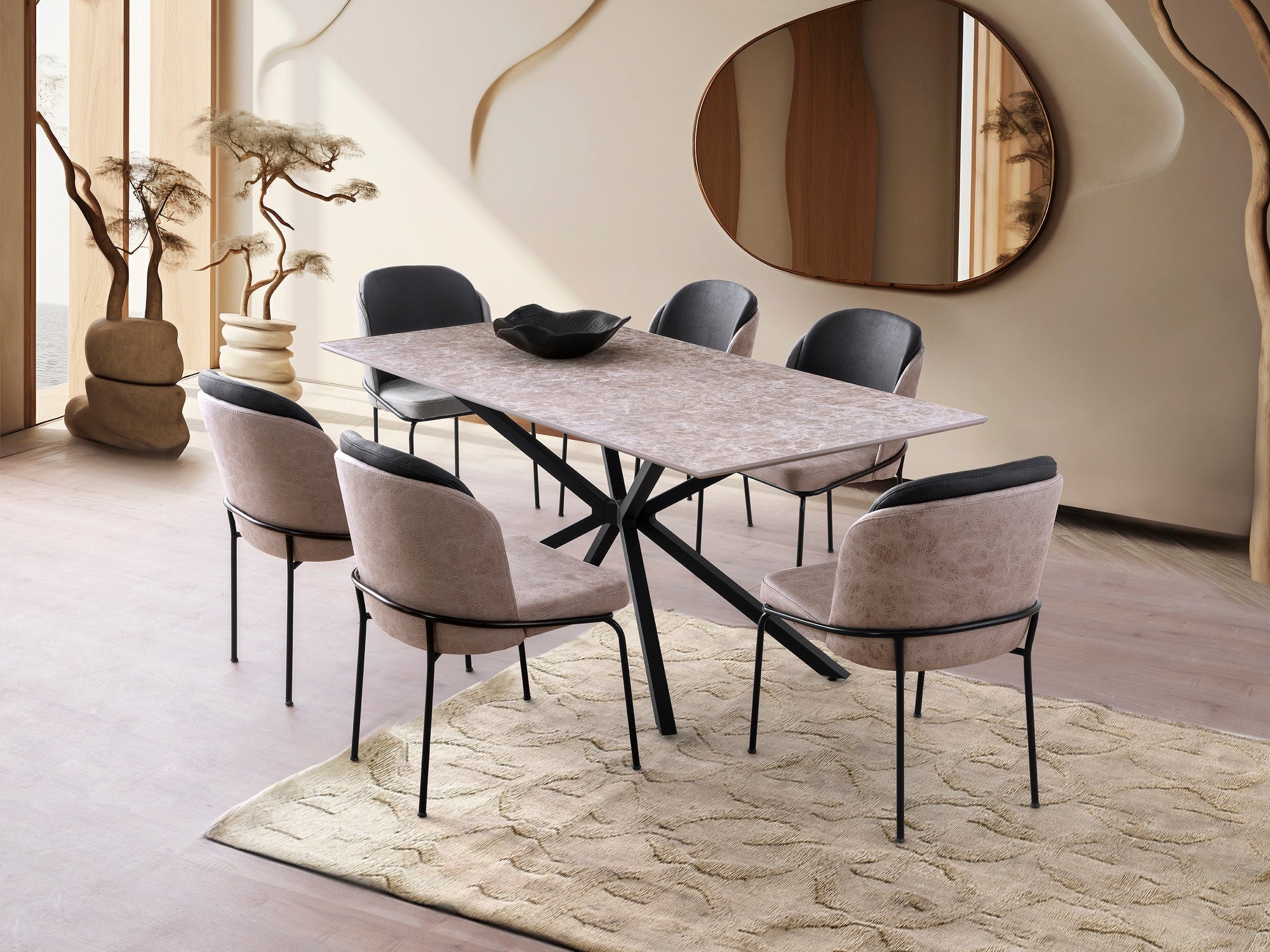 Mesa de jantar – 180x90x79 cm – Mocha claro – MDF e Ferro