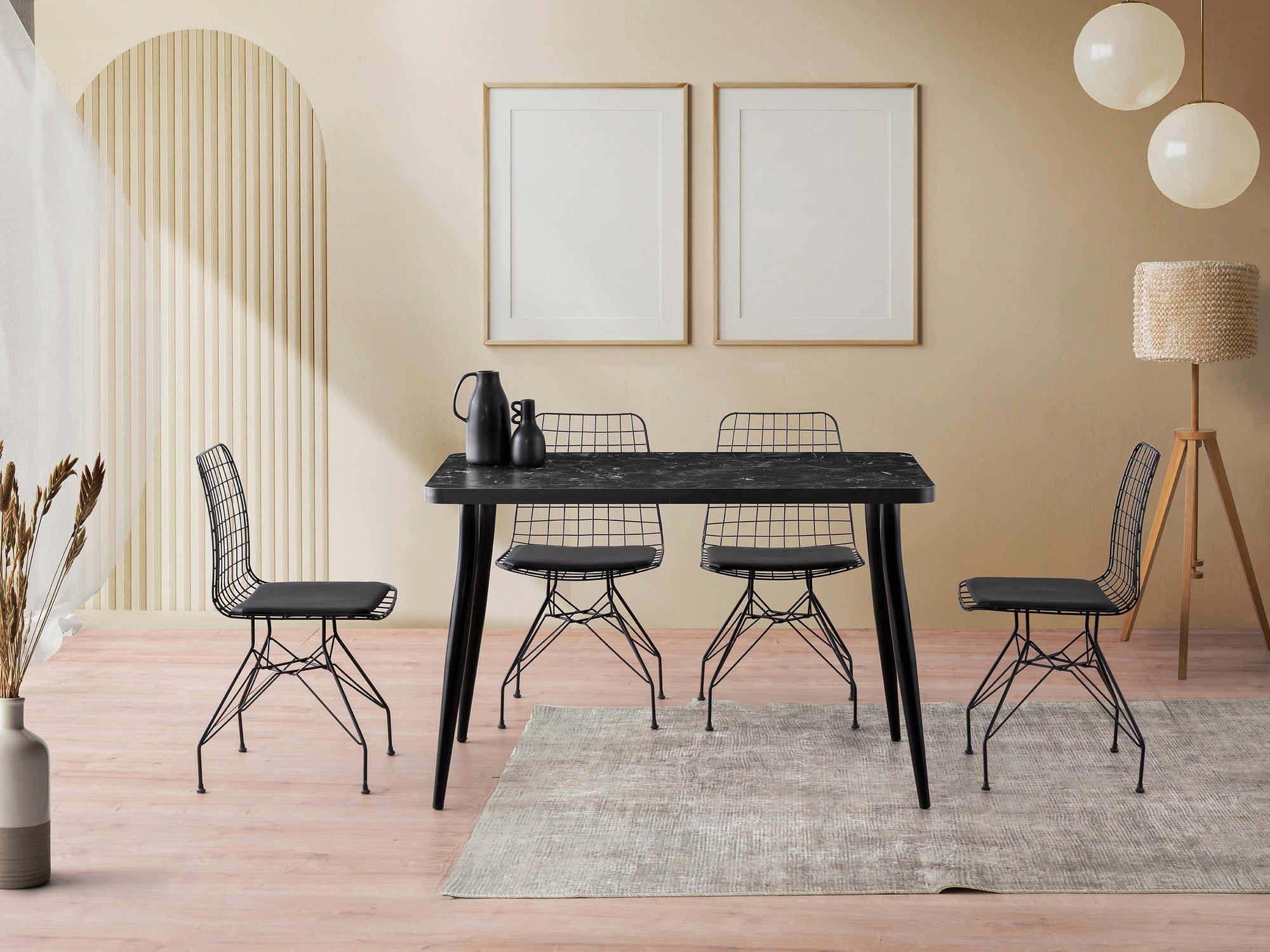 Mesa de Jantar – 120 cm x 75 cm x 70 cm – Mármore Preto – Painéis de partículas