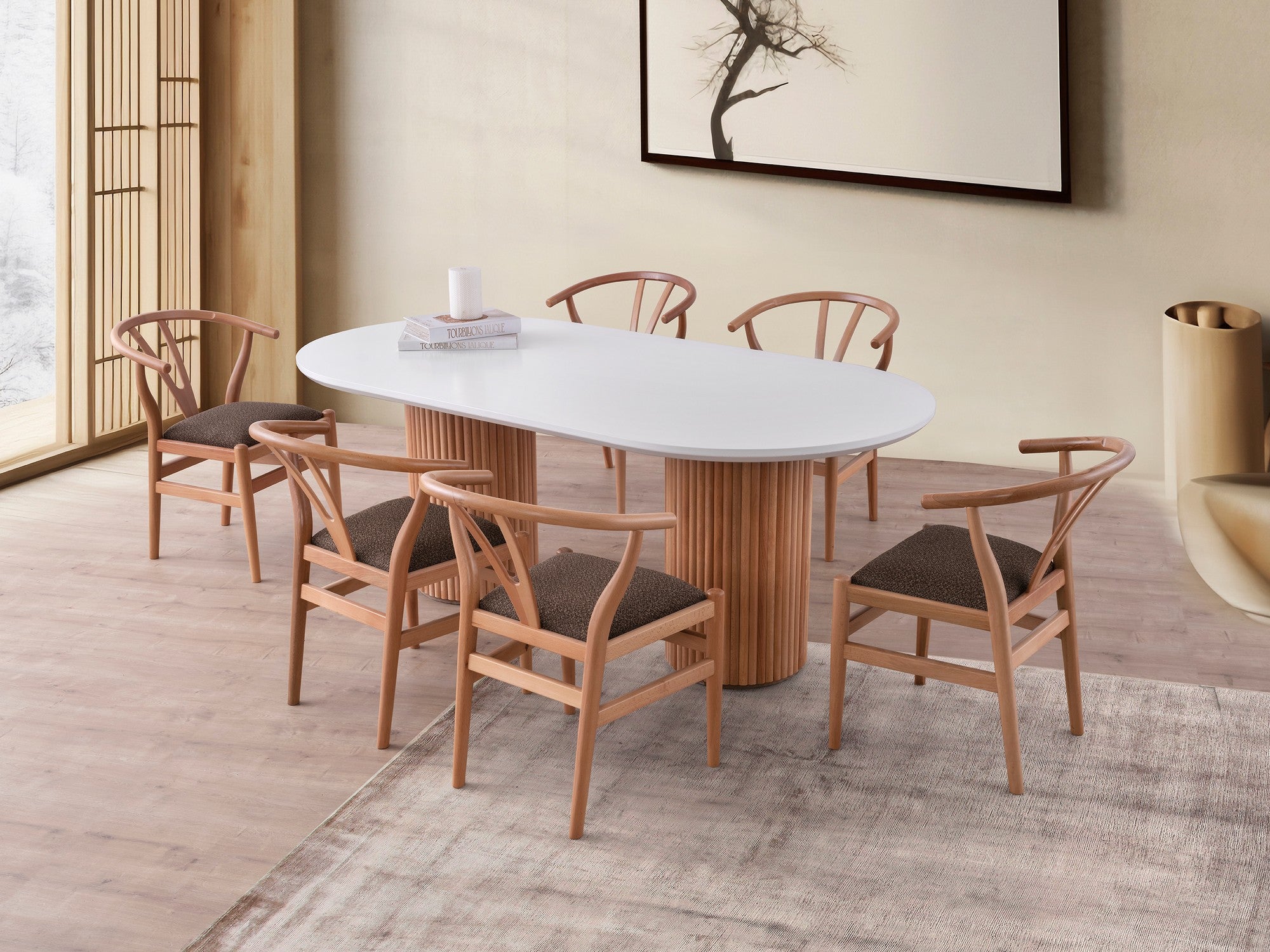 Mesa de jantar – 200 cm x 77 cm x 100 cm – Branco e nogueira – MDF