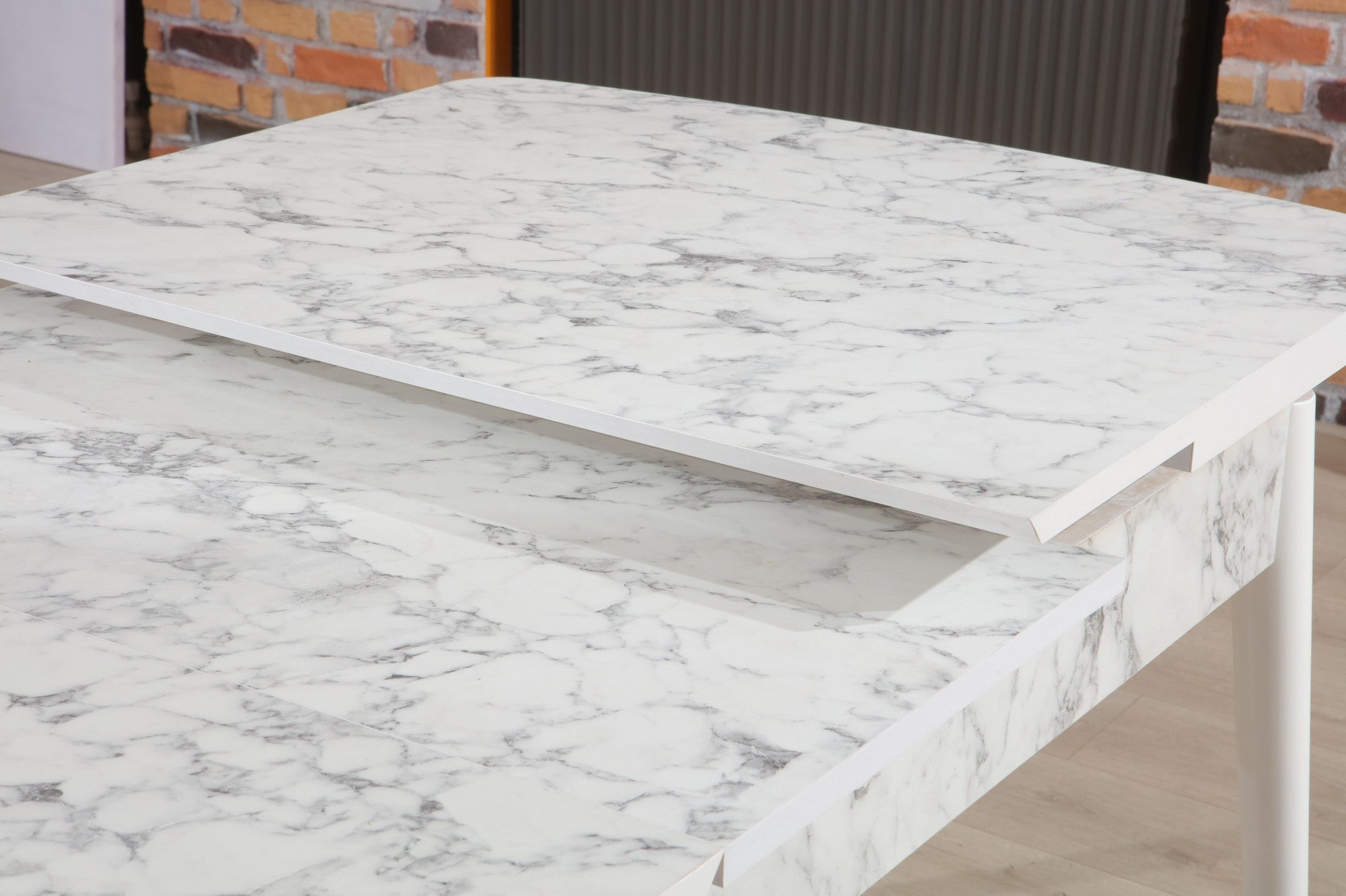 Mesa de Jantar Extensível – 132 cm a 170 cm – Branco e Cinza – Painel de partículas revestido a melamina