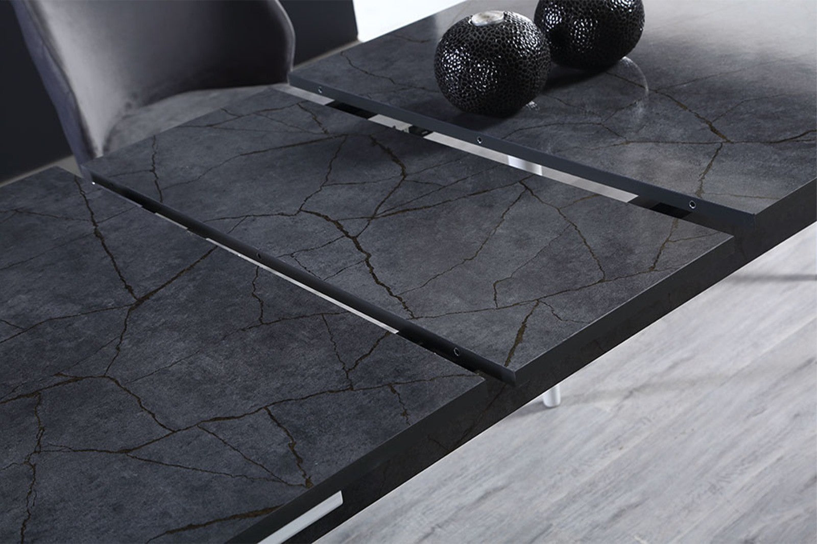 Mesa de Jantar Extensível – 132 cm / 170 cm – Antracite e Nogueira – Painel de Partículas