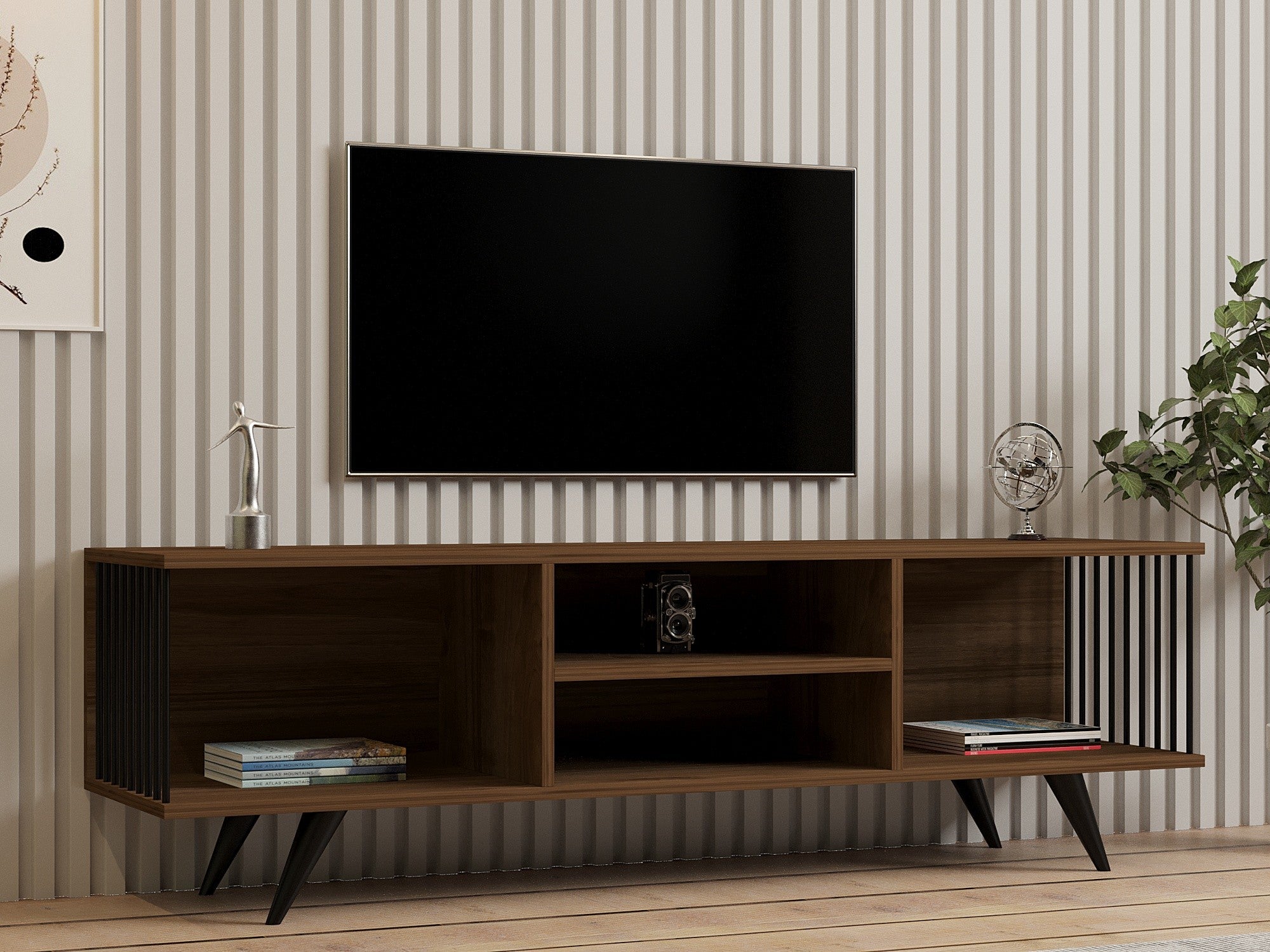 Móvel de TV – 150 cm x 49 cm x 31,6 cm – Nogueira – Painel de partículas revestido a melamina