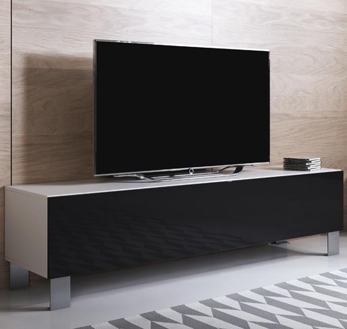 Móvel de TV – 160x42cm – Preto e Branco – Melamina