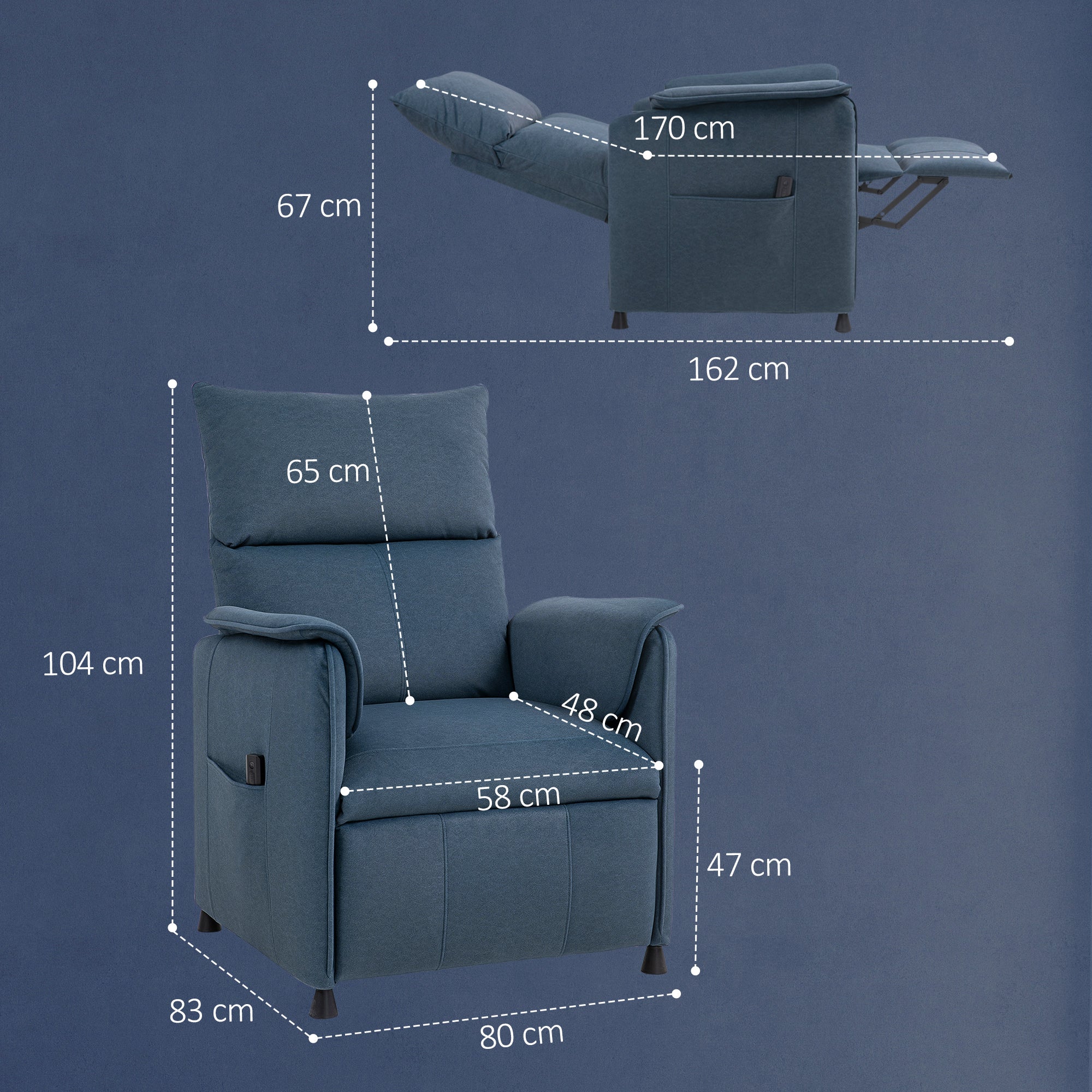 Poltrona Relax Reclinável Elétrica – 66x90x96 cm – Azul – Tecido (100% poliéster)