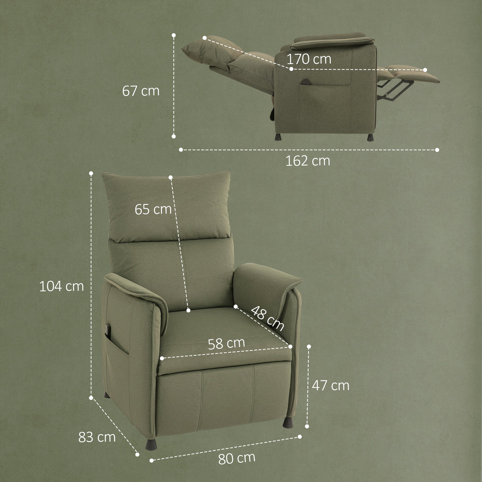 Poltrona Relax Reclinável Elétrica Verde Escuro 80x83x104 cm