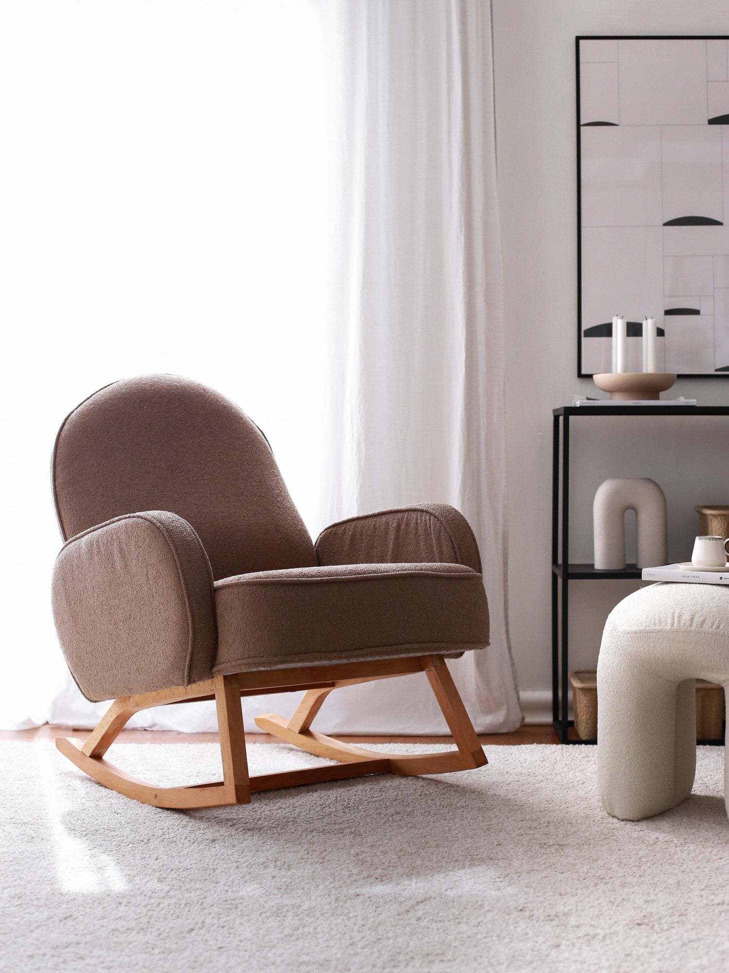 Poltrona elegante com estrutura 100% madeira, tecido Teddy, 75 cm L x 95 cm A x 88 cm P | Altura confortável para sentar: 43 cm | Perfeita para sala de estar e escritório