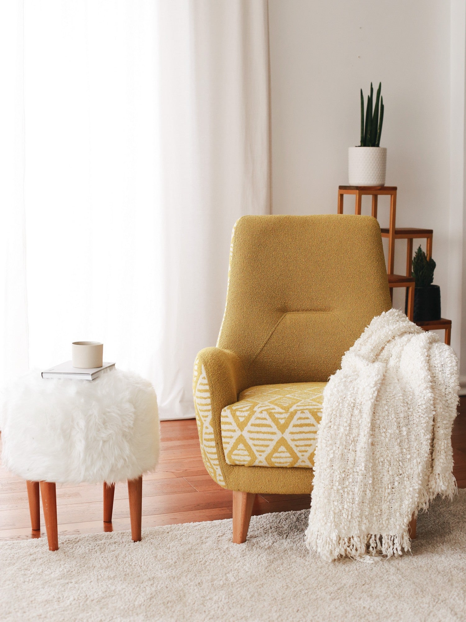 Poltrona Elegante, Tecido Teddy Amarelo, 75 x 95 x 88 cm | Estrutura 100% de Madeira, Altura Confortável para Sentar: 43 cm | Perfeita para Salas de Estar e Escritórios Modernos