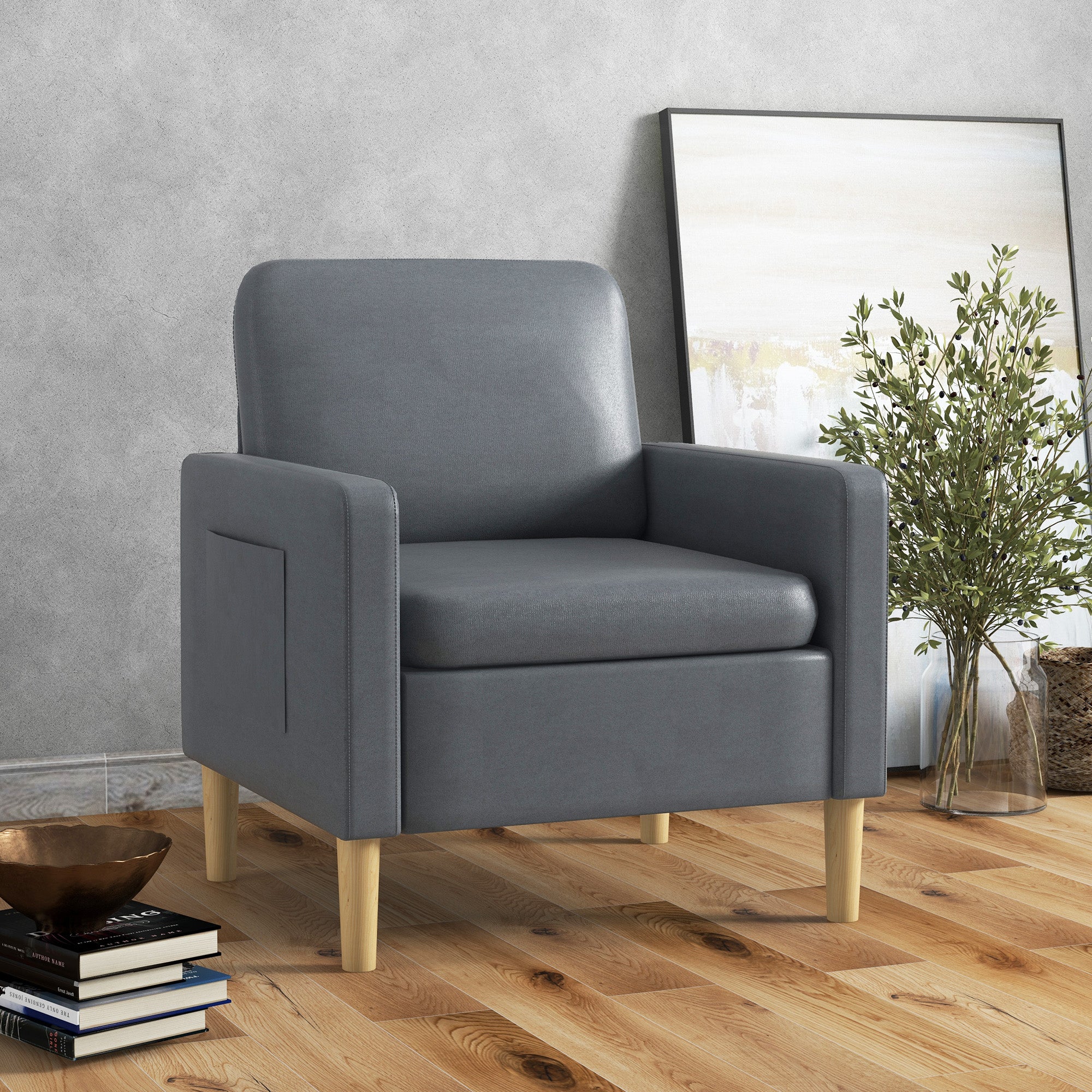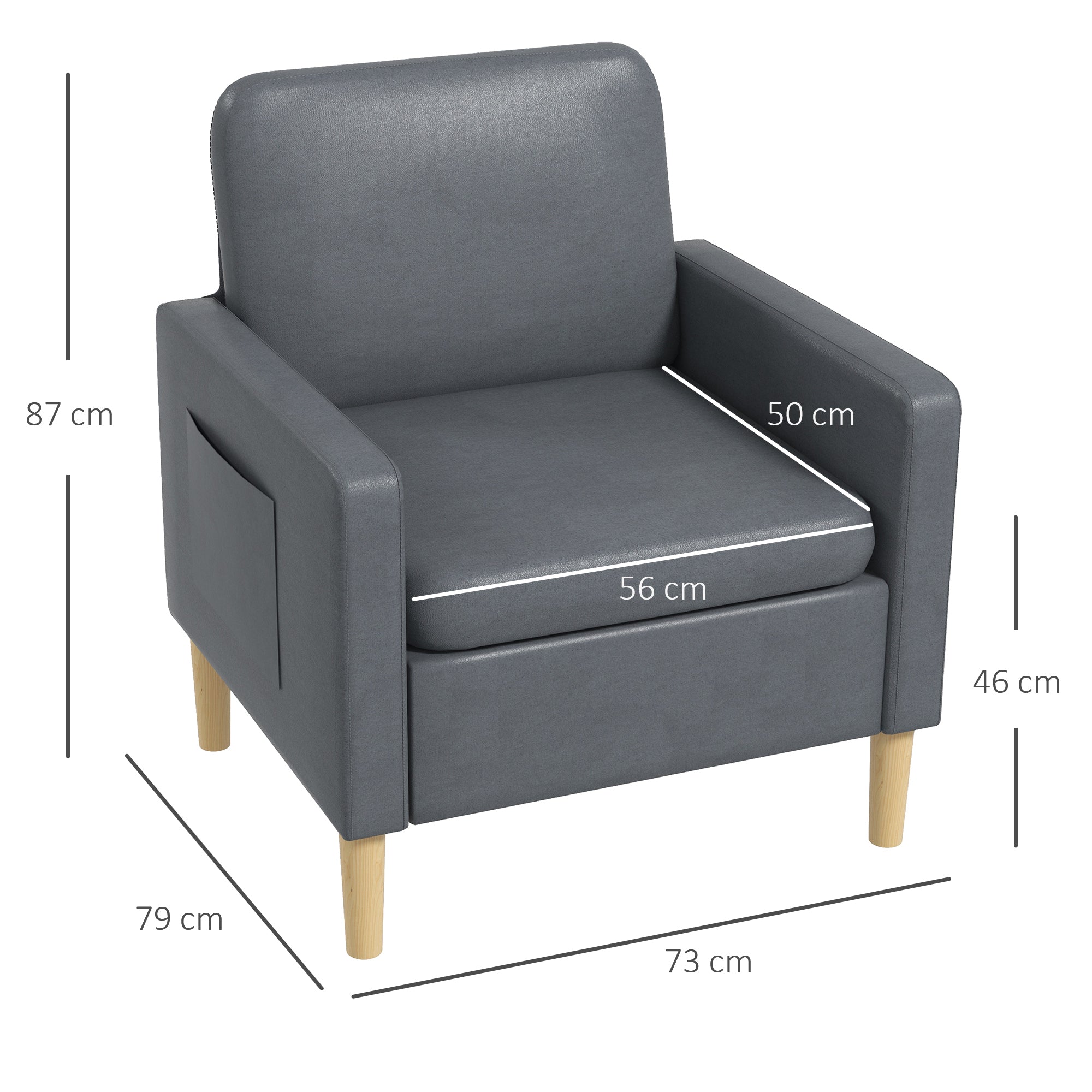 Poltrona – 73x79x87 cm – Cinza – Tecido de microfibra, aço e madeira de borracha