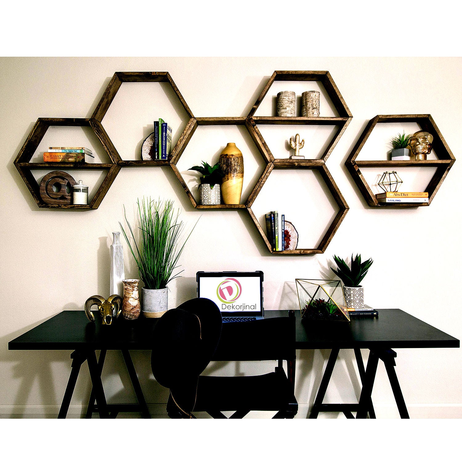 Prateleira de parede feita à mão – 40 x 50 x 13 cm – cor nogueira – 100% madeira de abeto