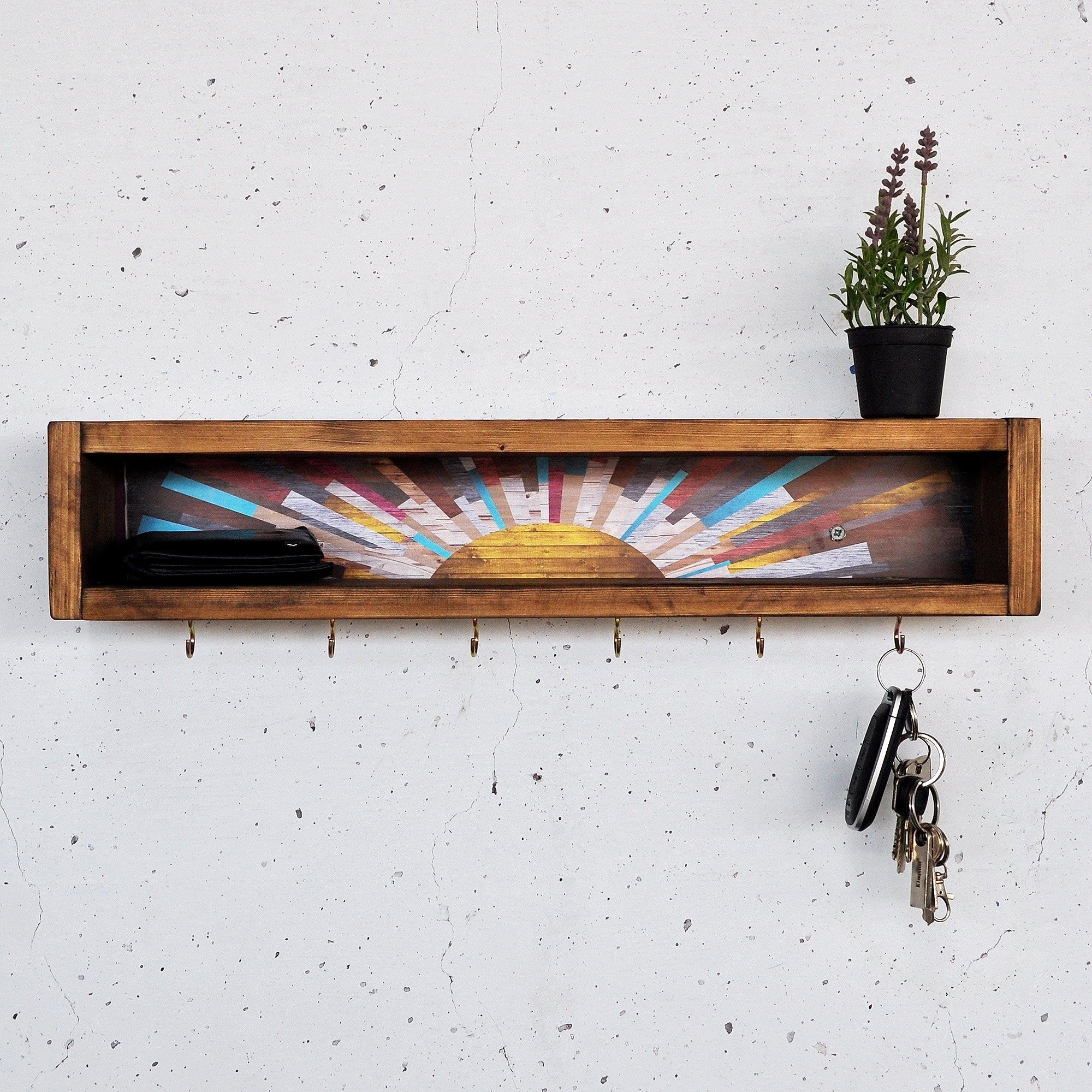 Prateleira de parede rústica feita à mão – 17 x 10 x 10 cm – nogueira – 100% madeira de abeto