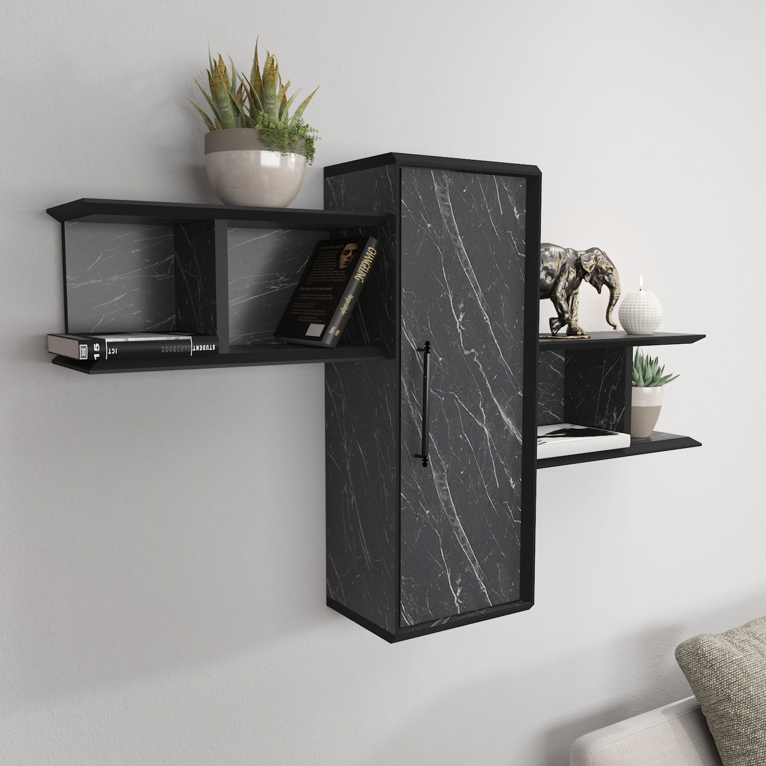 Prateleira de parede moderna, preto antracite, 118,6 x 35 x 51,8 cm | Painel de partículas 100% revestido de melamina, 18 mm de espessura | Armazenamento elegante para casa e escritório