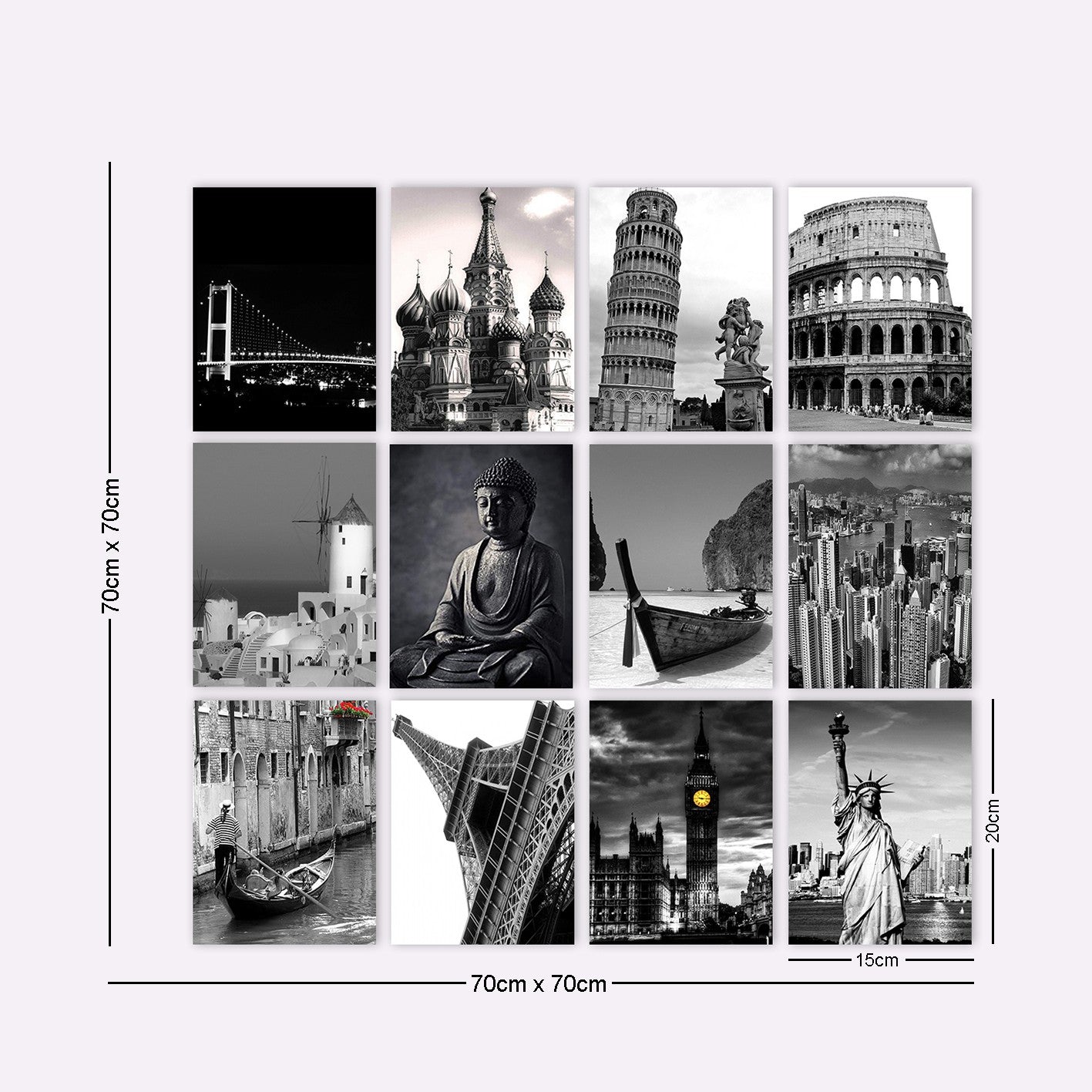 Conjunto de 12 pinturas decorativas em MDF, 20 x 15 cm, 100% MDF, 3 mm de espessura | Arte de parede elegante para decoração de casa, perfeita para salas de estar e escritórios