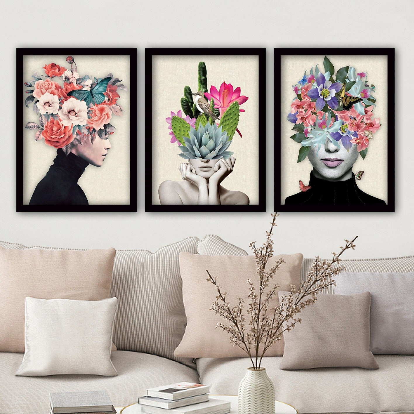 Pinturas Decorativas Elegantes em Moldura (3 Peças), 35 x 45 cm | 100% MDF, 2 cm de Espessura | Arte de Parede Elegante para Decoração de Casa e Escritório, Artista Anônimo