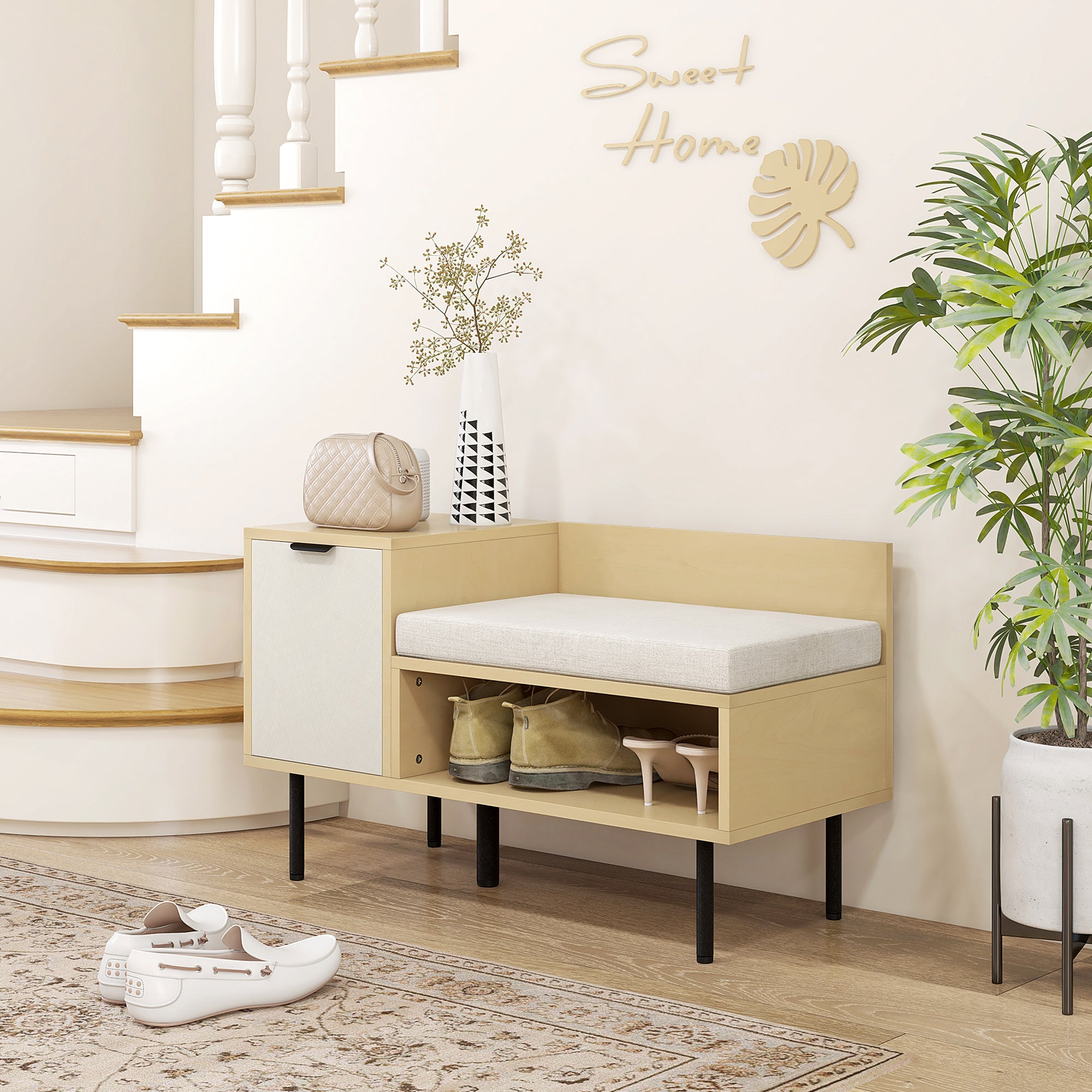 Banco Sapateira de Entrada com Almofada 80x35x47 cm - Madeira e Cinza