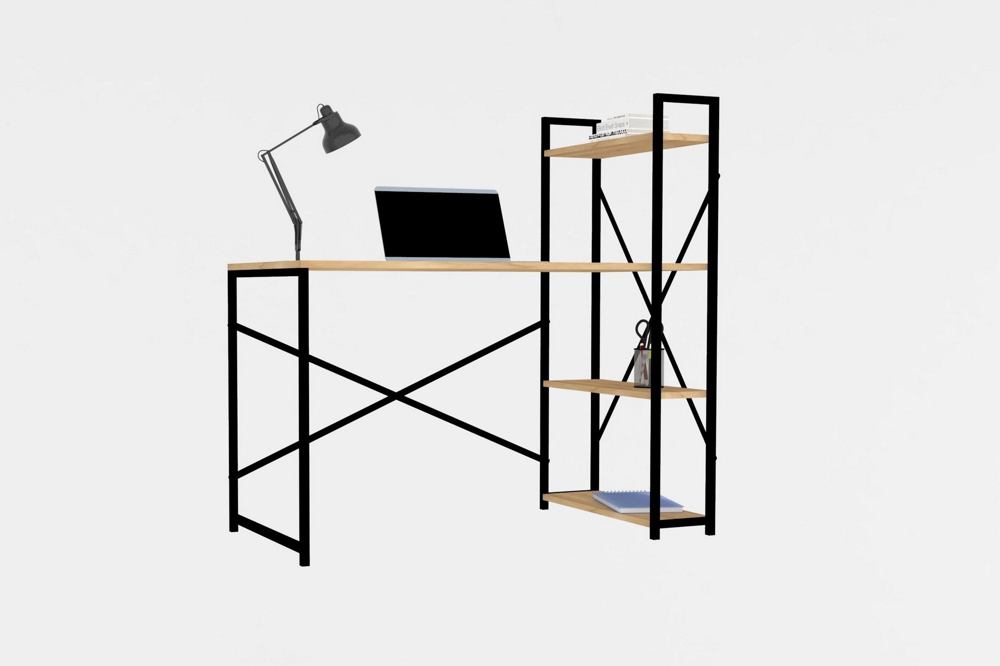 Secretária de Estudo e Estante – 125cm x 150cm x 60cm – Pinho Atlântico e Preto – Aglomerado e Metal